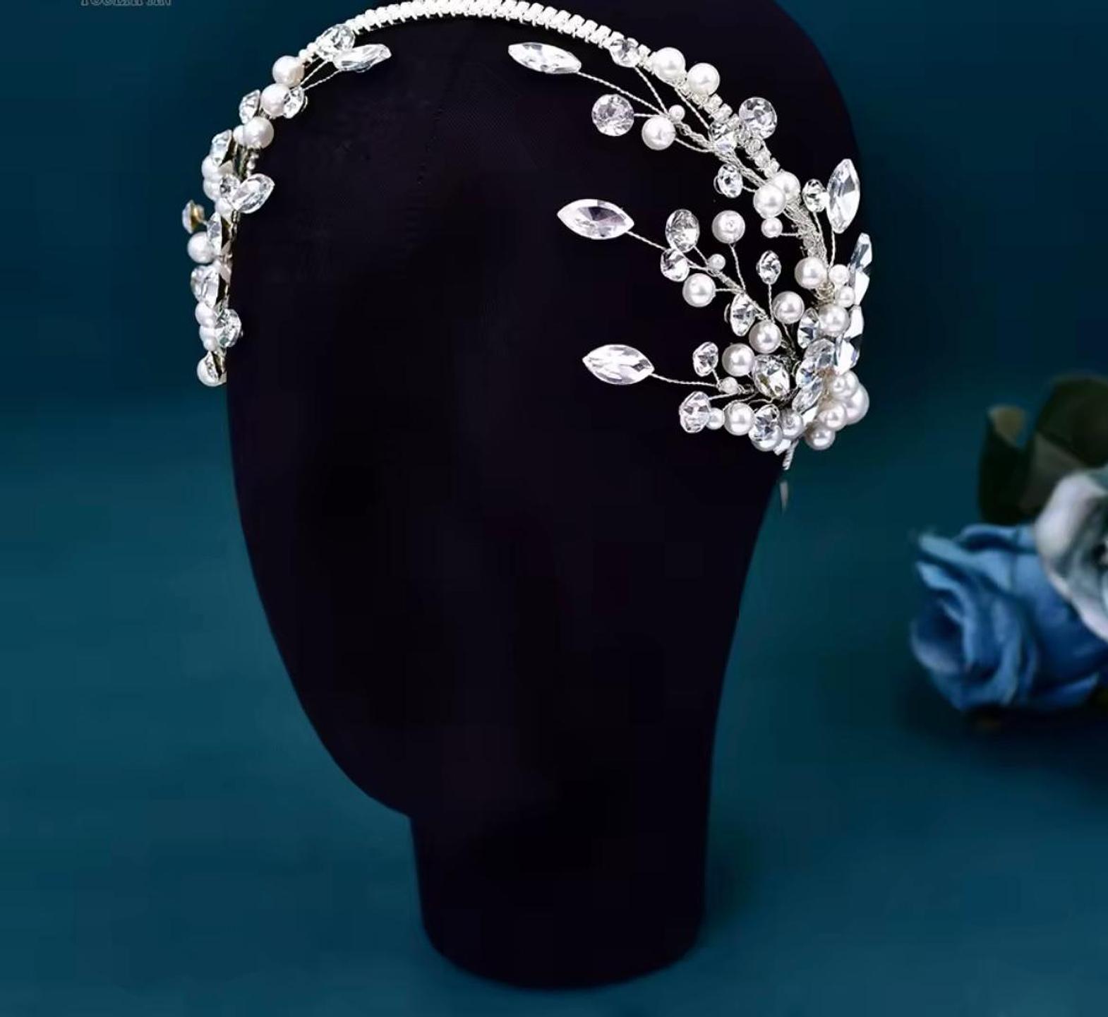 This beautiful bridal hair vine is exquisitely crafted from shiny crystals shaped in vine leaves and accented with luminous pearls. The delicate, flexible tiara design provides an unforgettable sparkle for your wedding day ensemble.