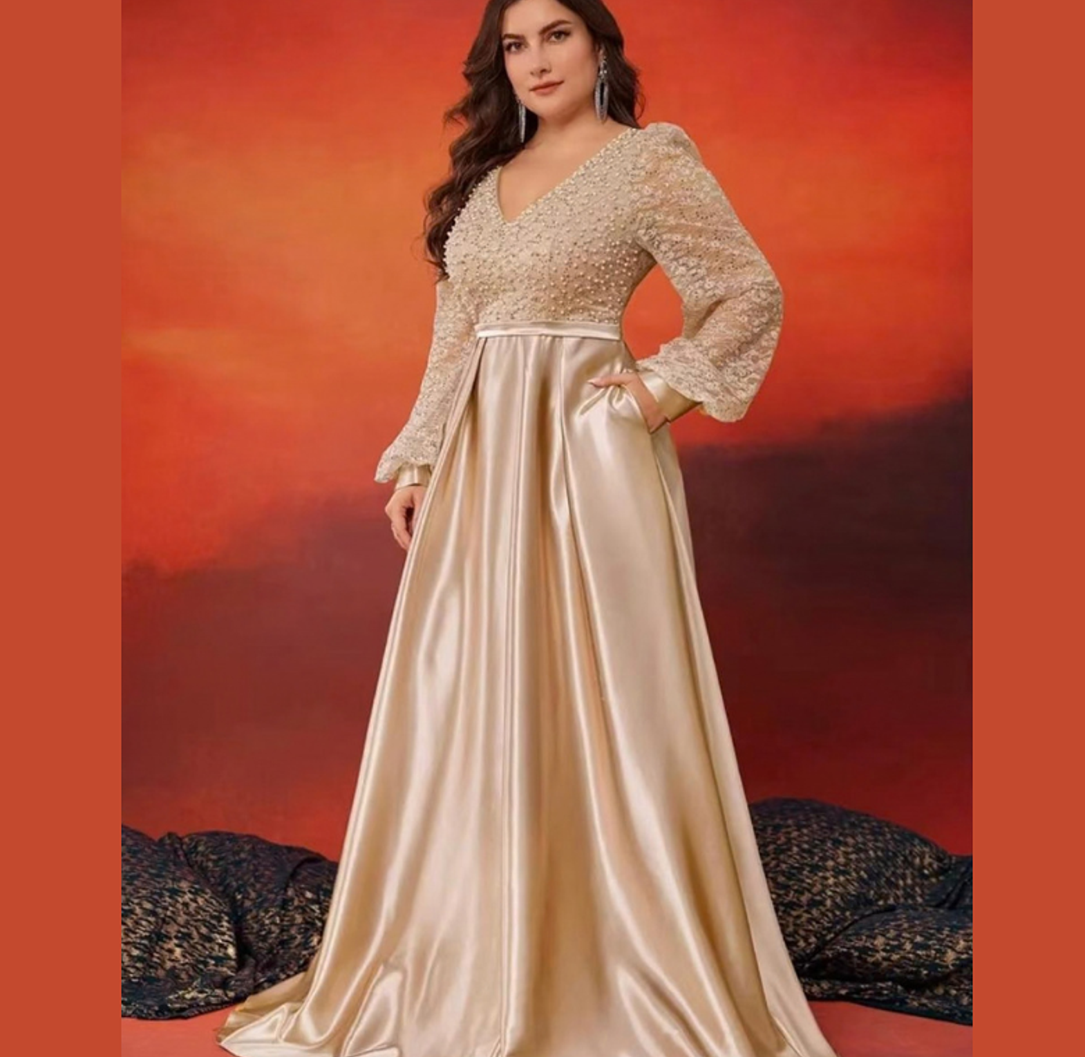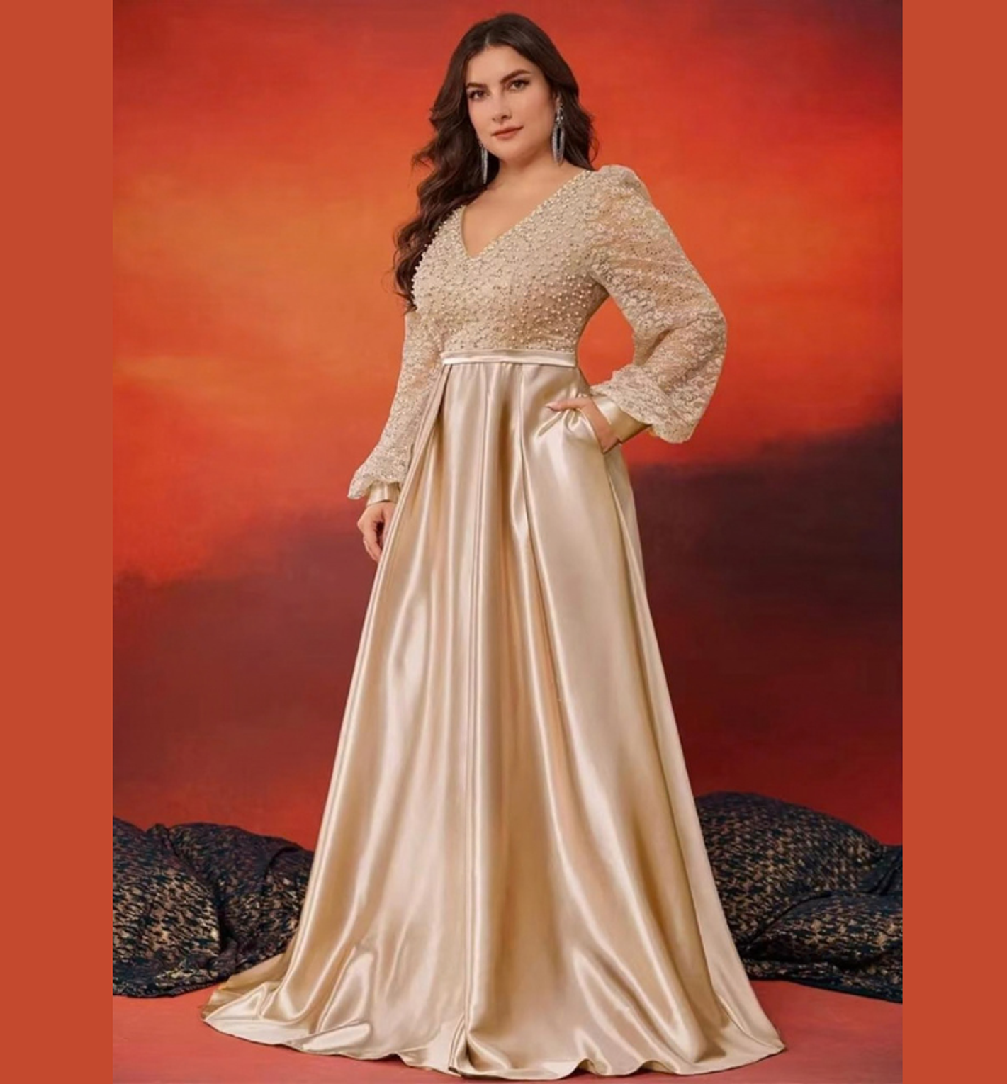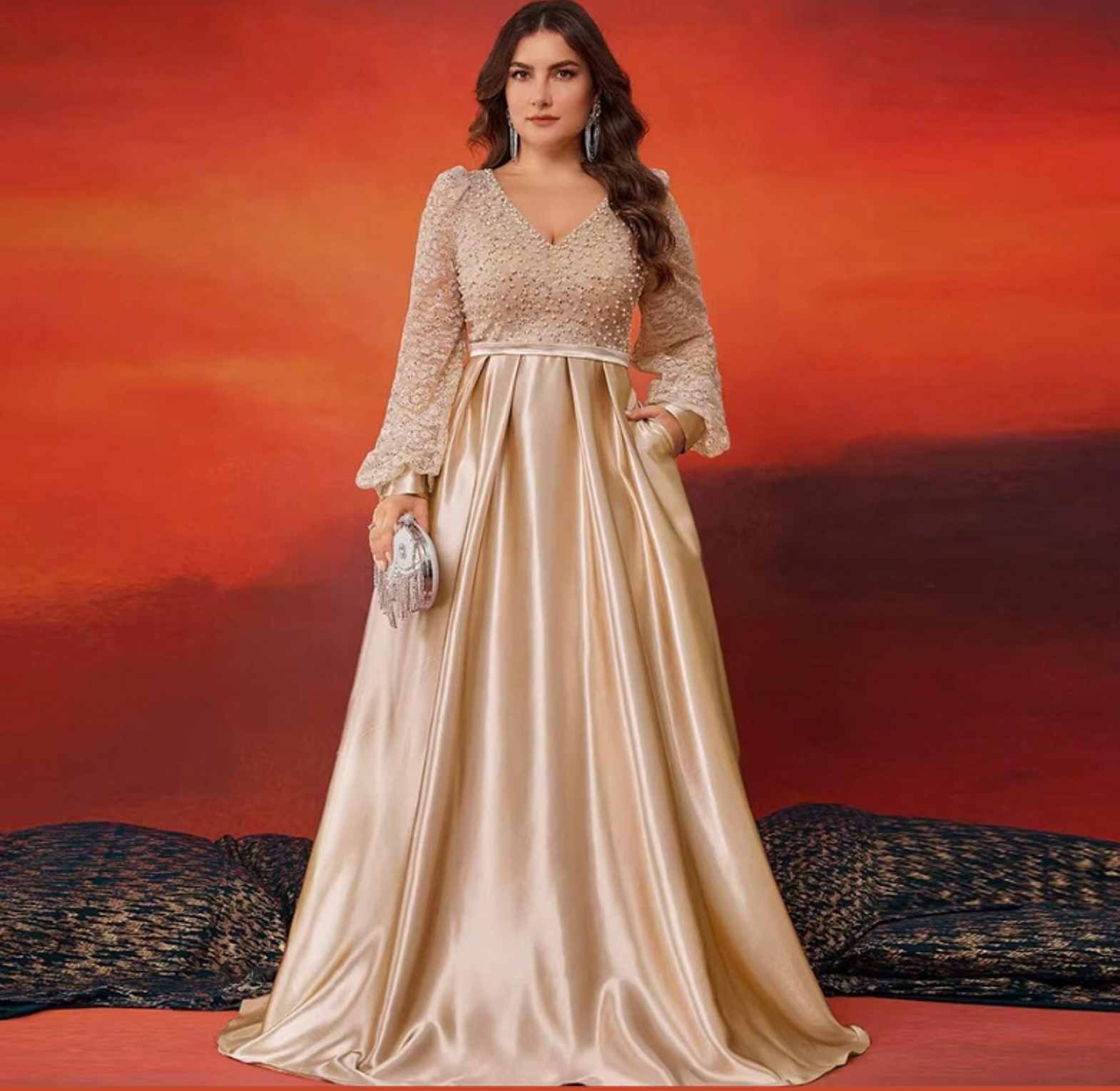 Discreet Side Pockets: Combines red-carpet glamour with practical functionality.