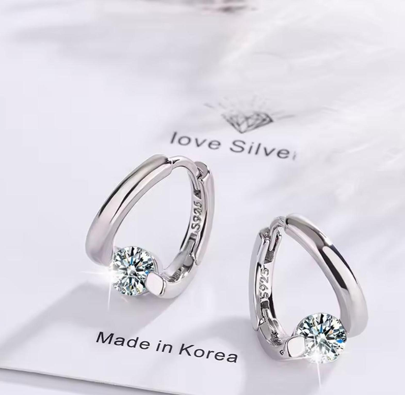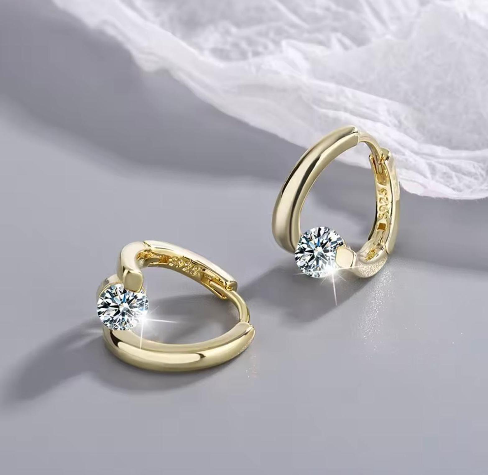 Add a touch of sophisticated sparkle to your everyday look with these minimalist huggie hoops featuring a brilliant, precision-cut solitaire crystal. Their sleek, contoured design offers a seamless blend of modern elegance and timeless charm.