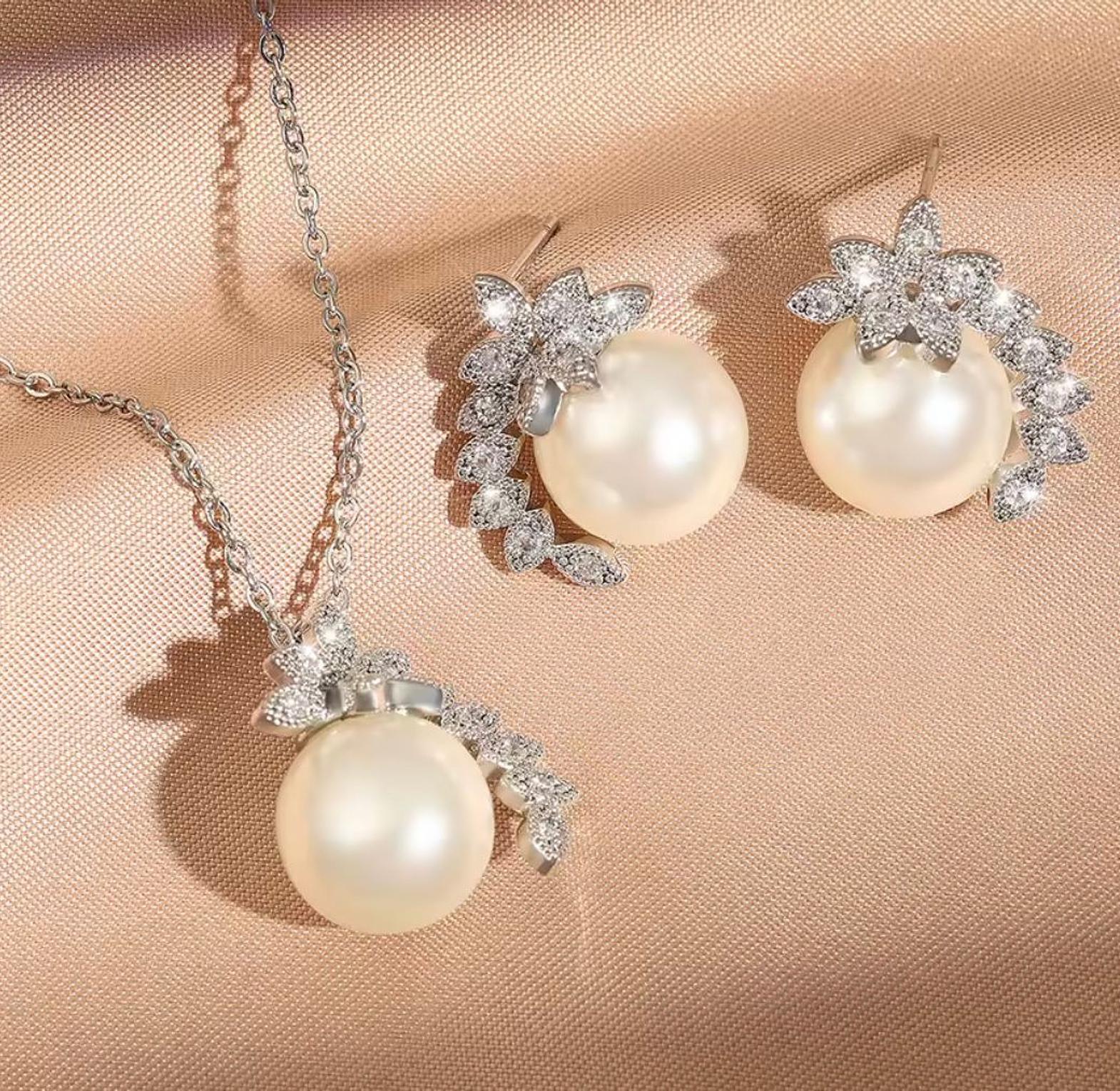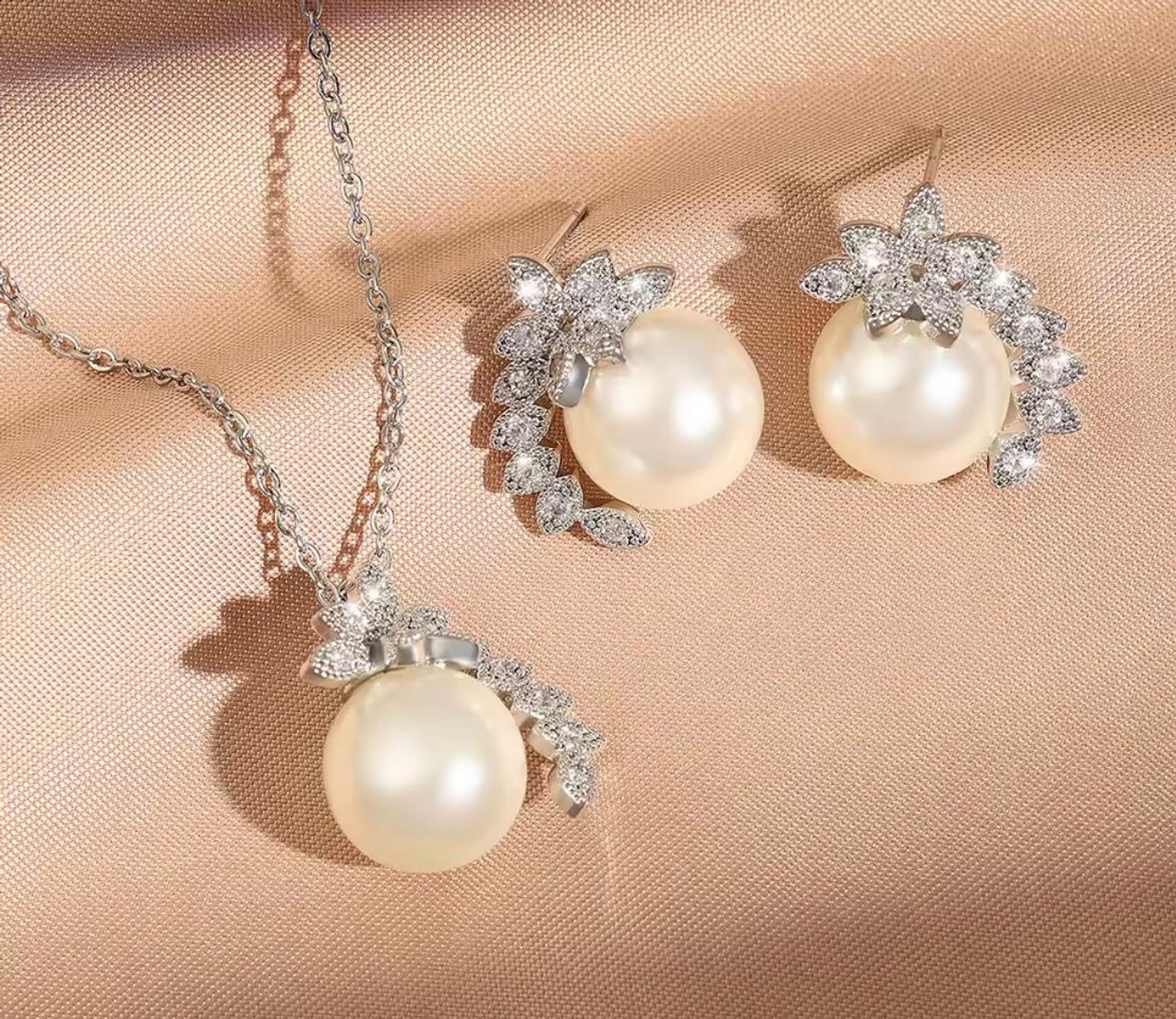 Indulge in the timeless charm of lustrous cream pearls cradled by shimmering crystal-encrusted vines. This hypoallergenic, non-tarnish set is the perfect romantic accent for brides, bridesmaids, or any formal celebration.