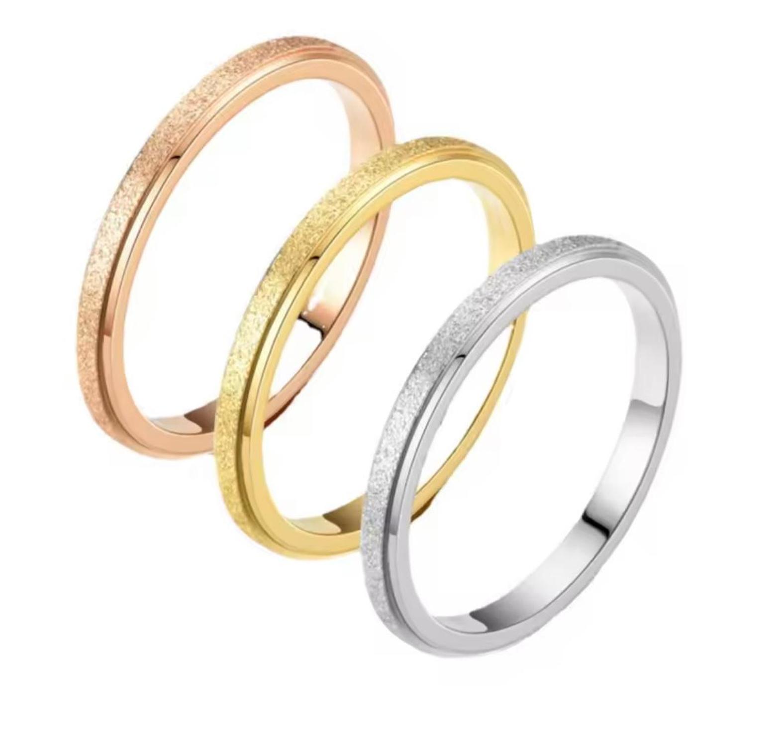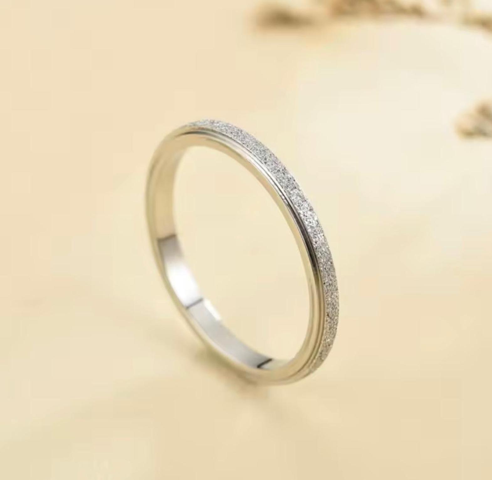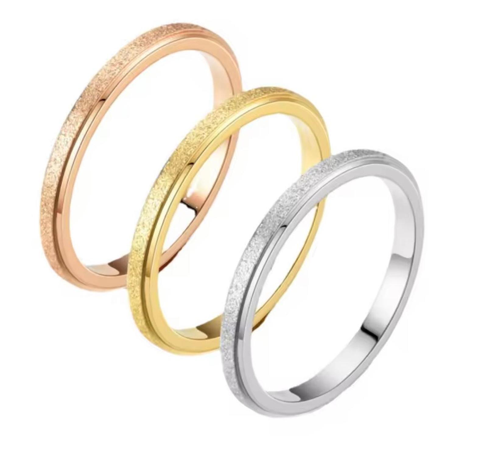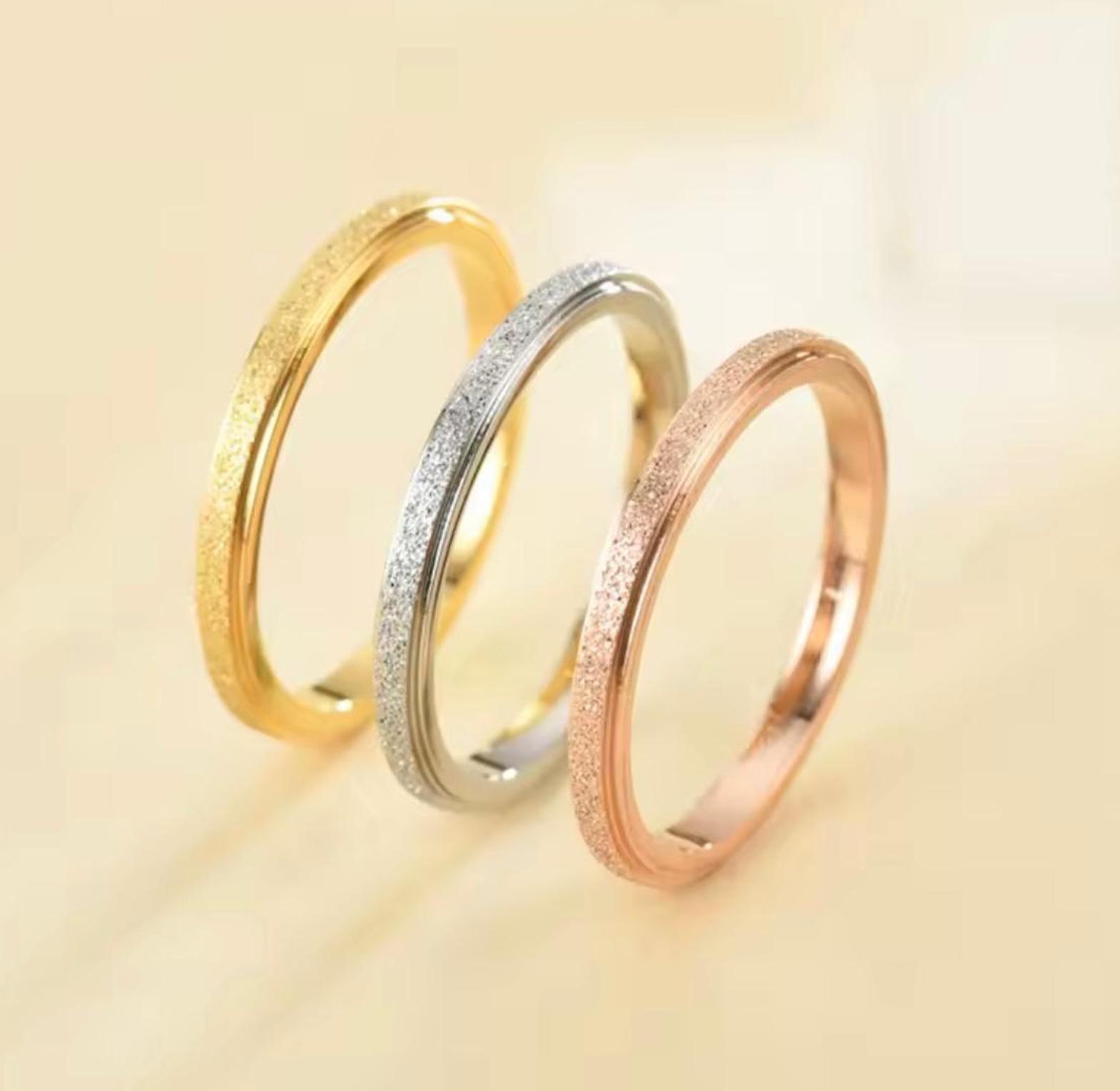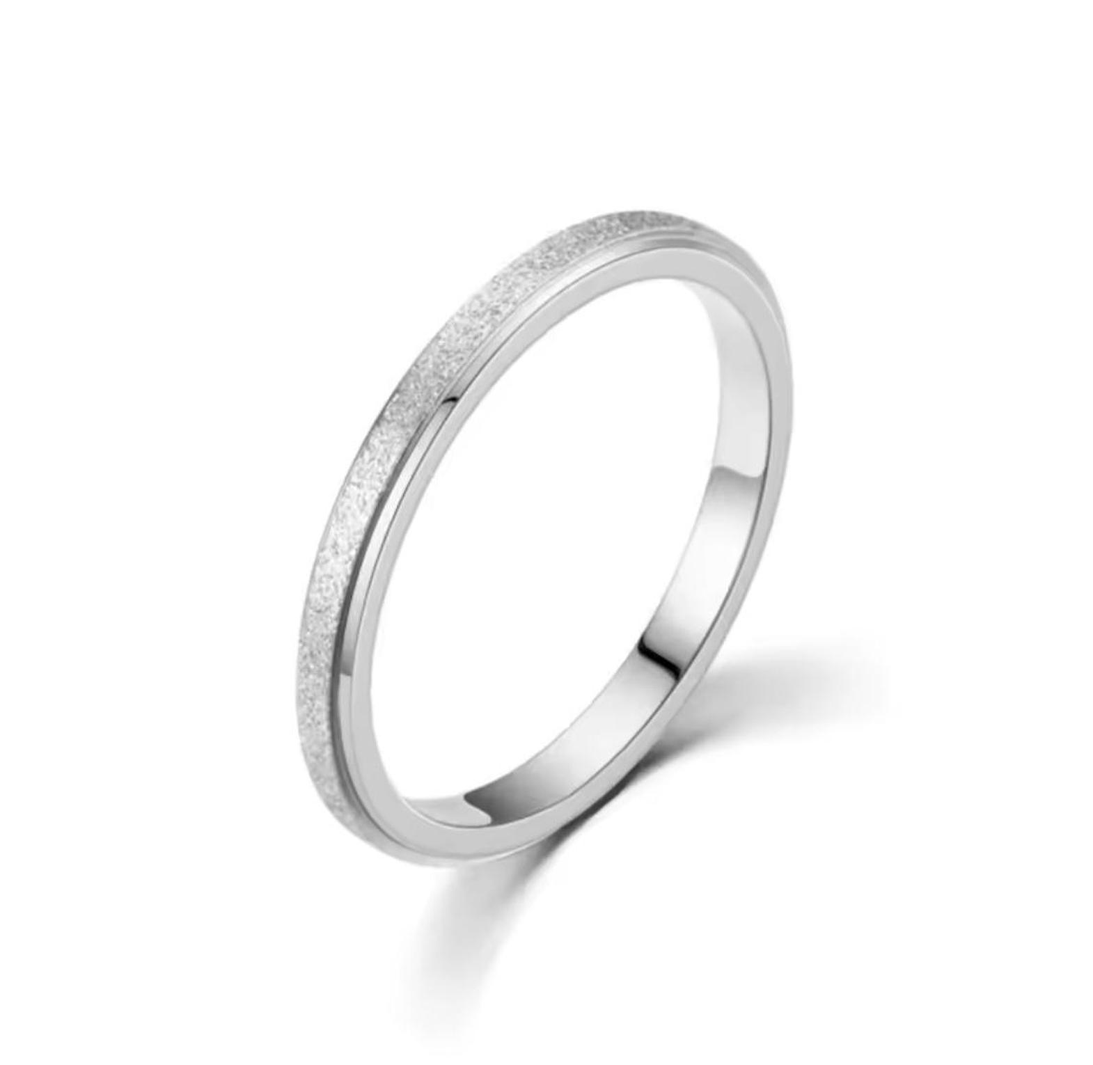Elevate your everyday stacking game with these refined stainless steel bands, featuring a unique dual-texture finish. A delicate frosted "stardust" texture meets a high-polish metallic edge, creating a subtle yet captivating shimmer for the modern minimalist.