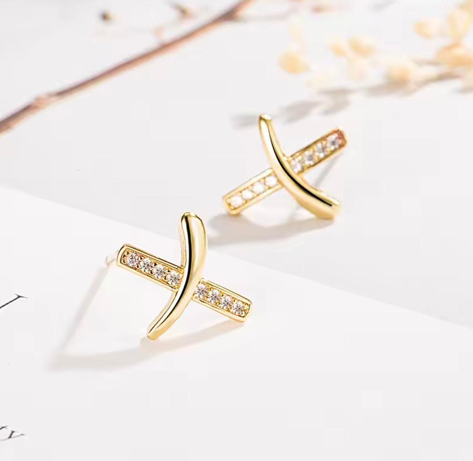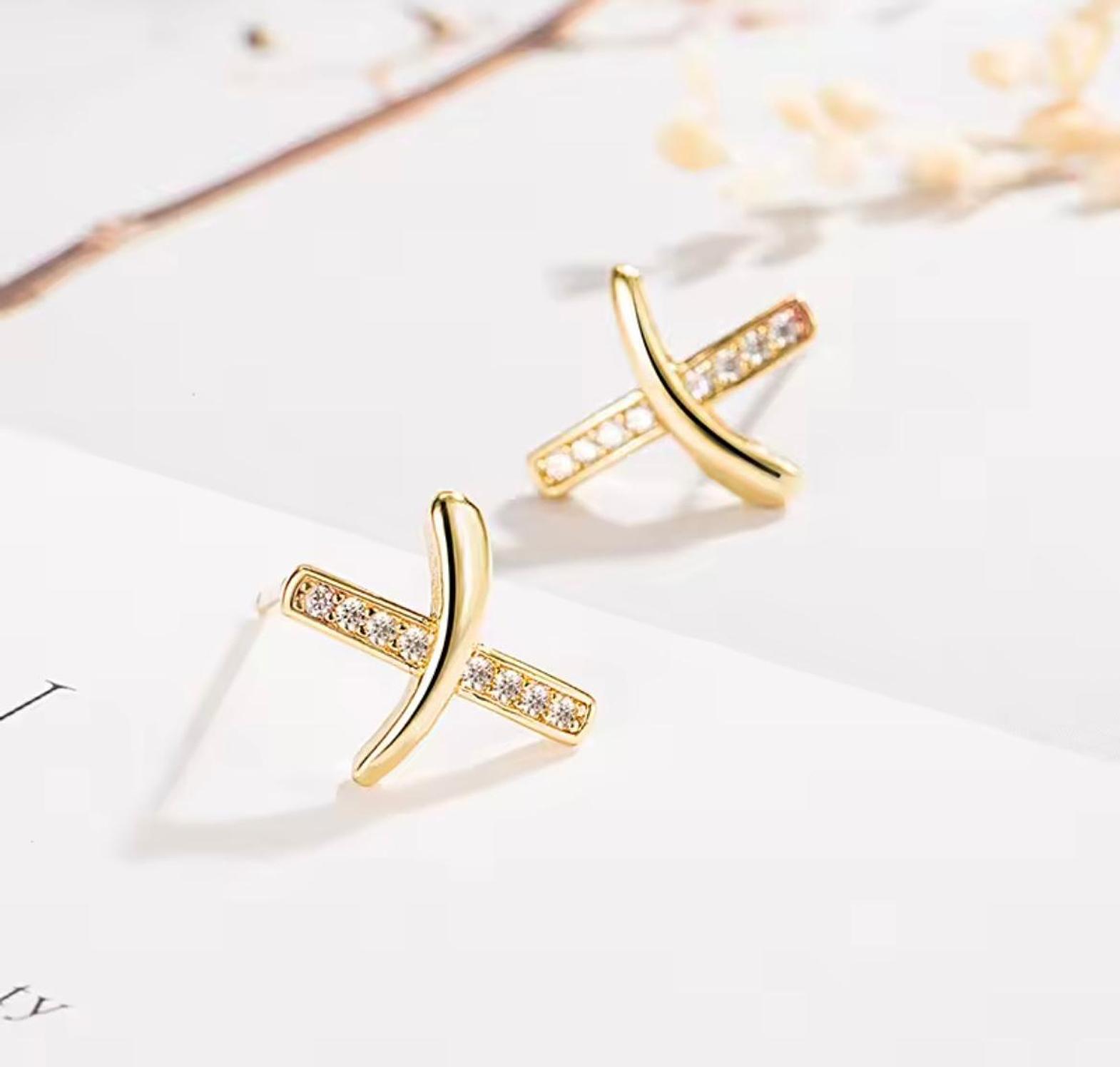 Discover the perfect intersection of minimalist charm and shimmering luxury with these exquisite gold-plated cross earrings. Featuring a sleek, polished curve overlaid on a pavé-set crystal bar, they are a modern must-have for every jewelry lover.