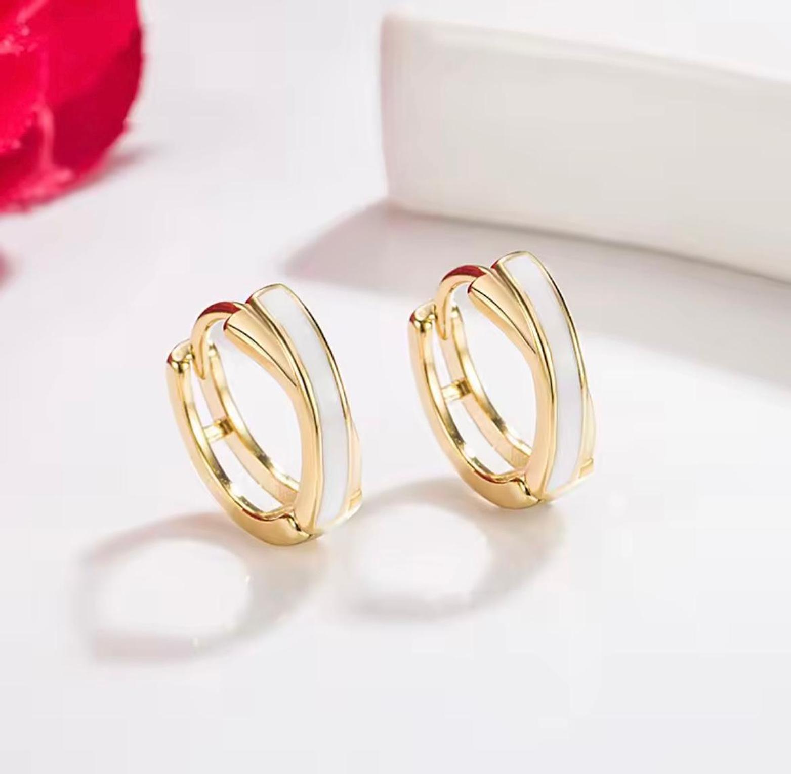Elevate your daily ensemble with these sleek, dual-textured huggie hoops, featuring a crisp white enamel-style inlay set within a polished metallic frame. Their minimalist silhouette and high-contrast finish make them a versatile staple for modern, effortless glamour.
