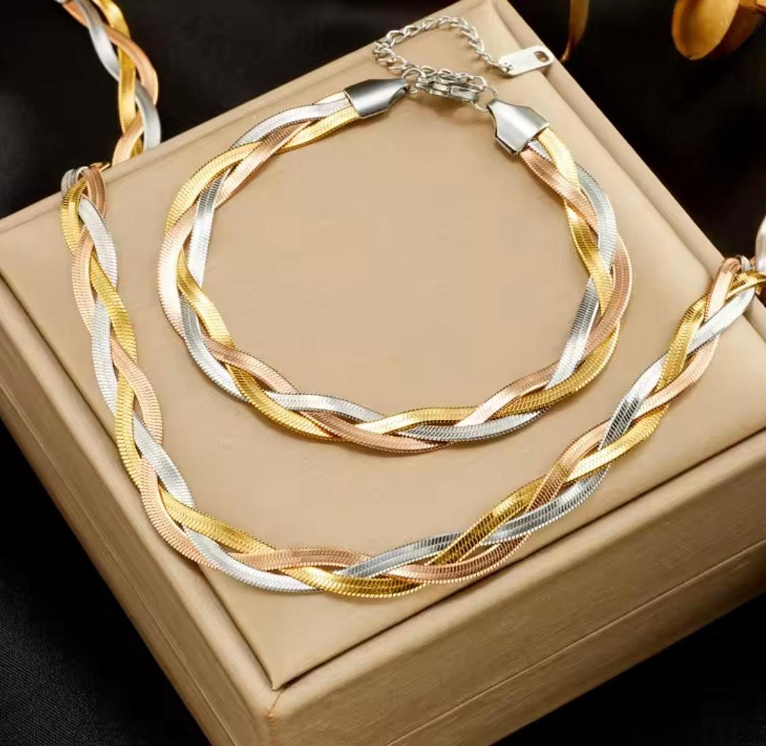 Indulge in the ultimate expression of golden luxury with this masterfully woven set, designed to drape like liquid silk against your skin. A radiant duo that commands attention with its intricate texture and high-fashion silhouette.