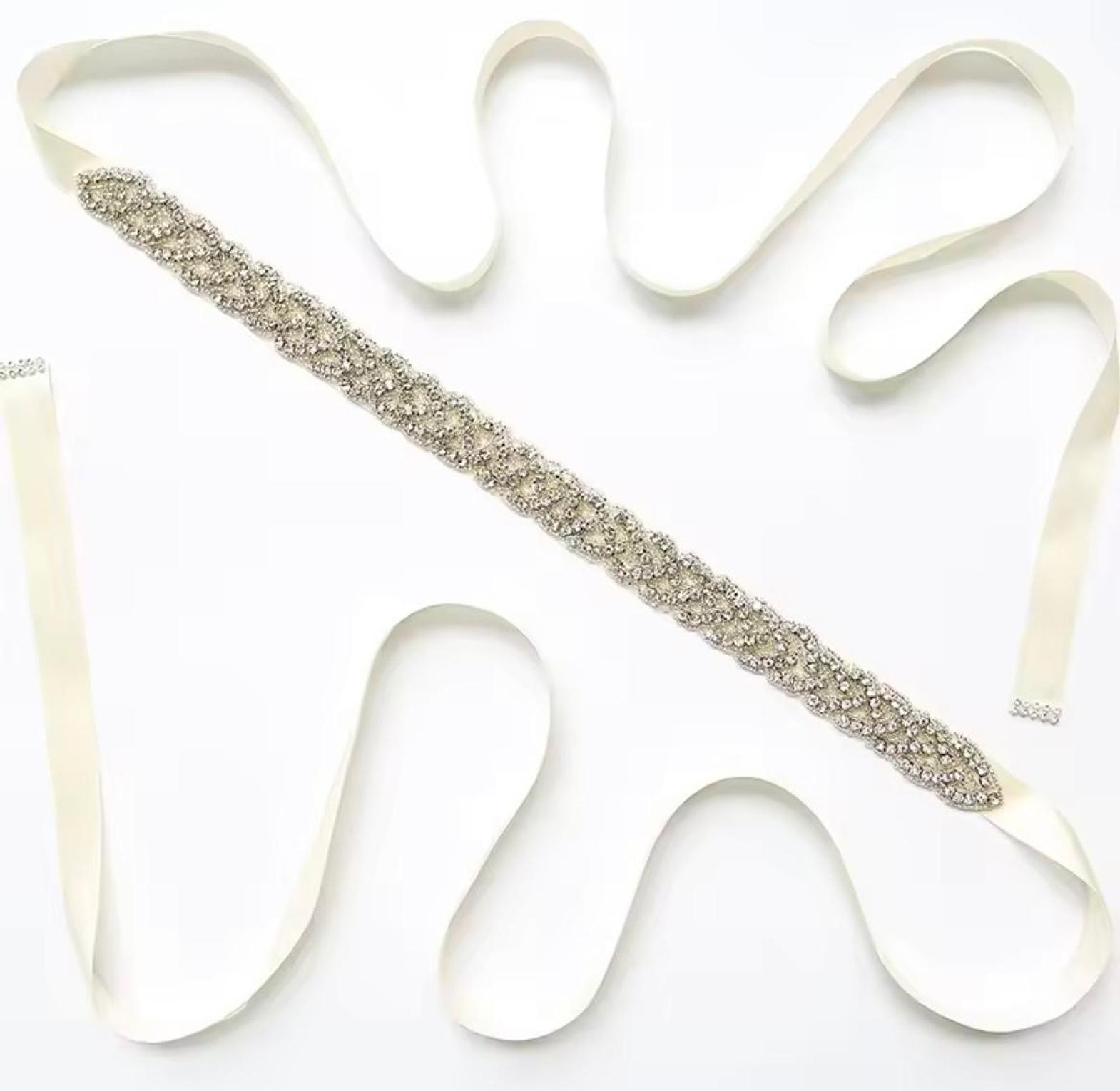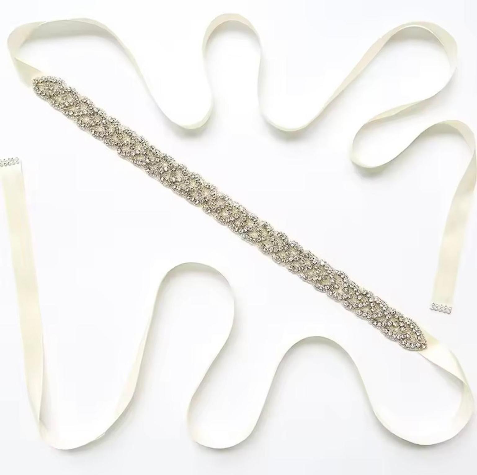 This exquisite waist belt features an intricate garland of brilliant rhinestones set on a soft ribbon, designed to add concentrated sparkle to any bridal gown. It instantly cinches the waist with a touch of heirloom elegance and unmatched shimmer.