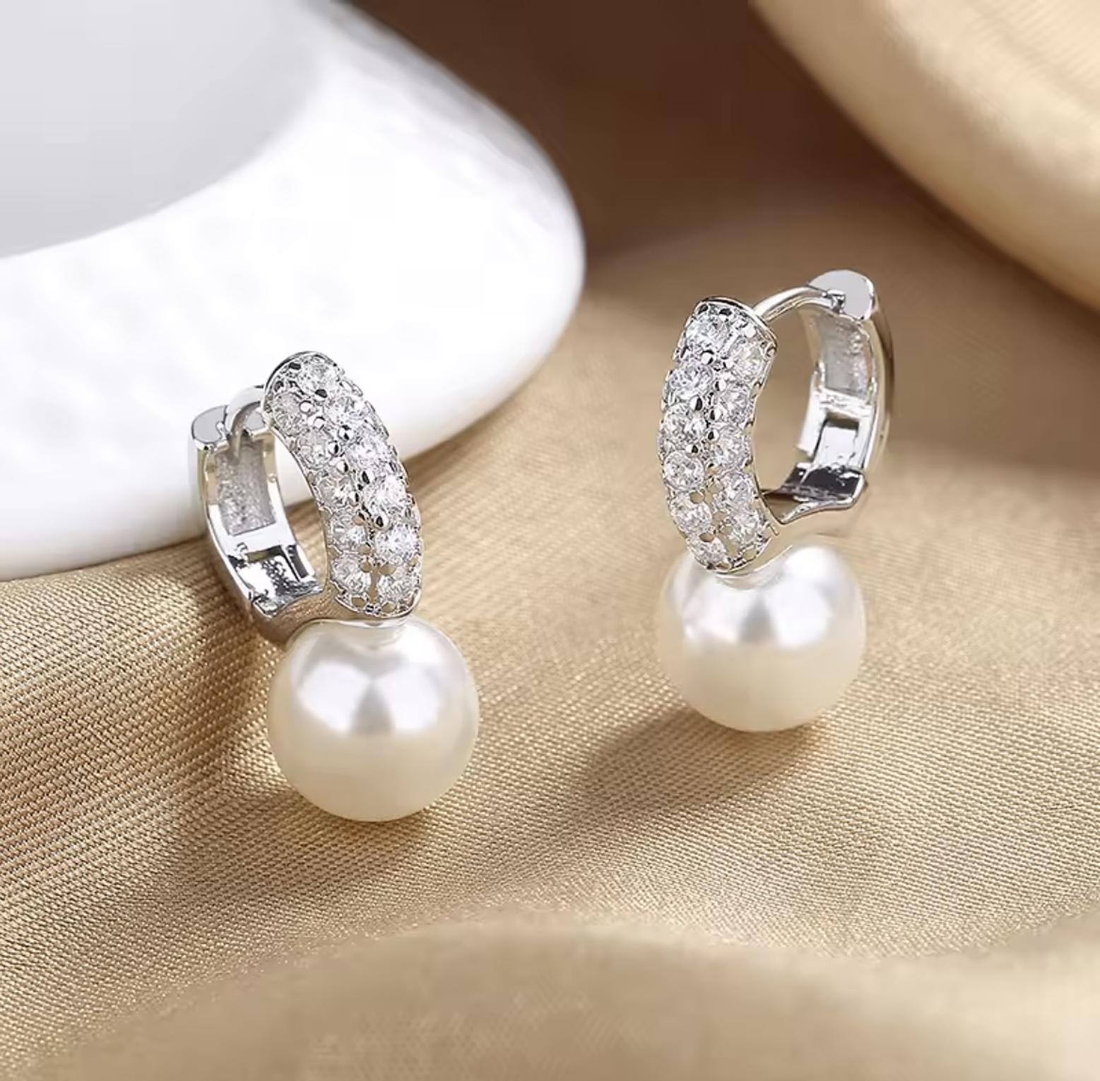 These glamorous huggie hoops feature a domed, gold-plated surface completely encrusted with brilliant micro-pave stones and finished with a dangling luminous faux pearl. They perfectly blend dazzling sparkle with classic, refined elegance.