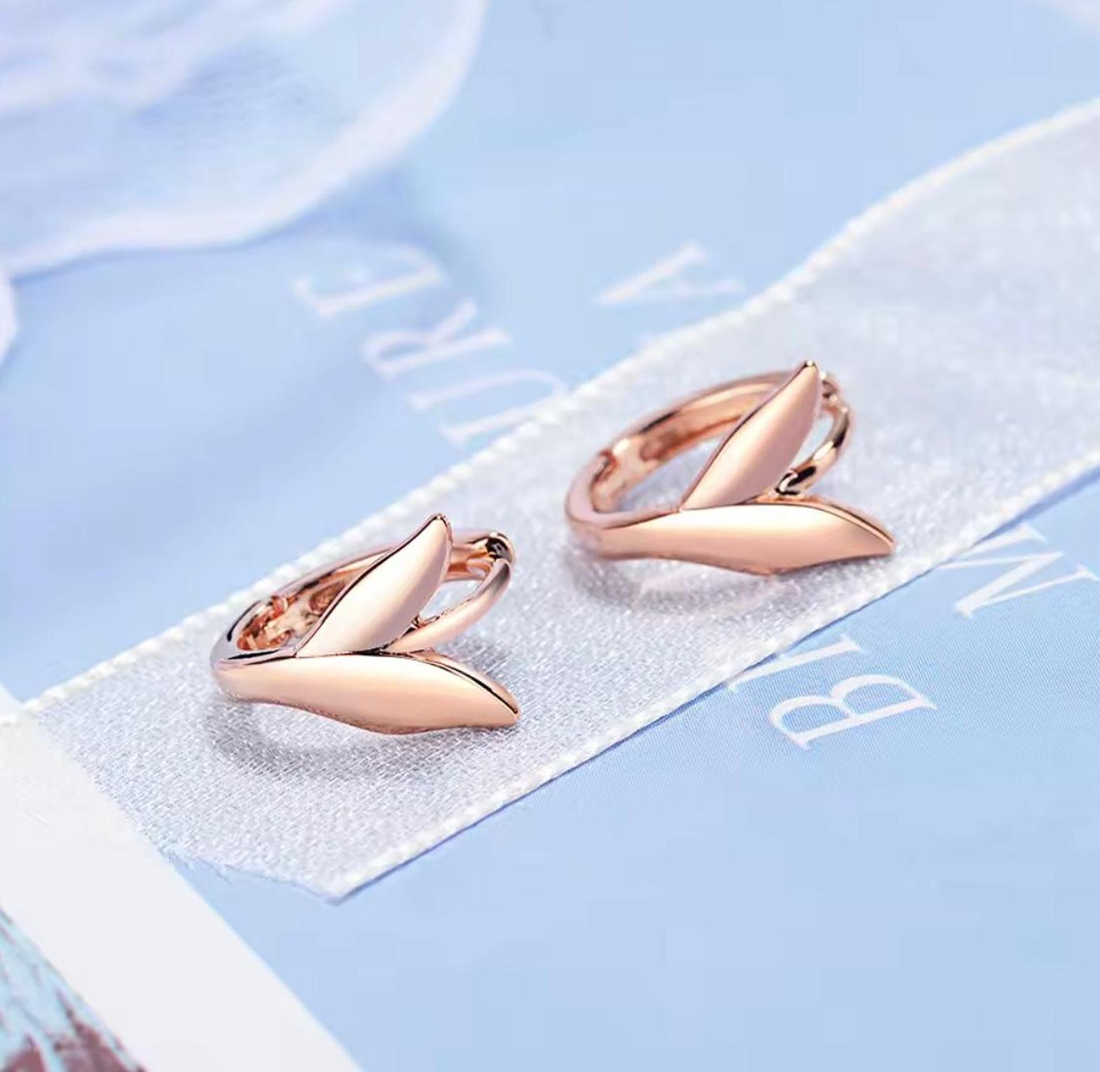 Infuse your daily attire with a touch of organic elegance through these beautifully contoured rose gold huggie hoops. Featuring a delicate petal-leaf silhouette, they offer a subtle, nature-inspired charm that radiates feminine grace and modern simplicity.