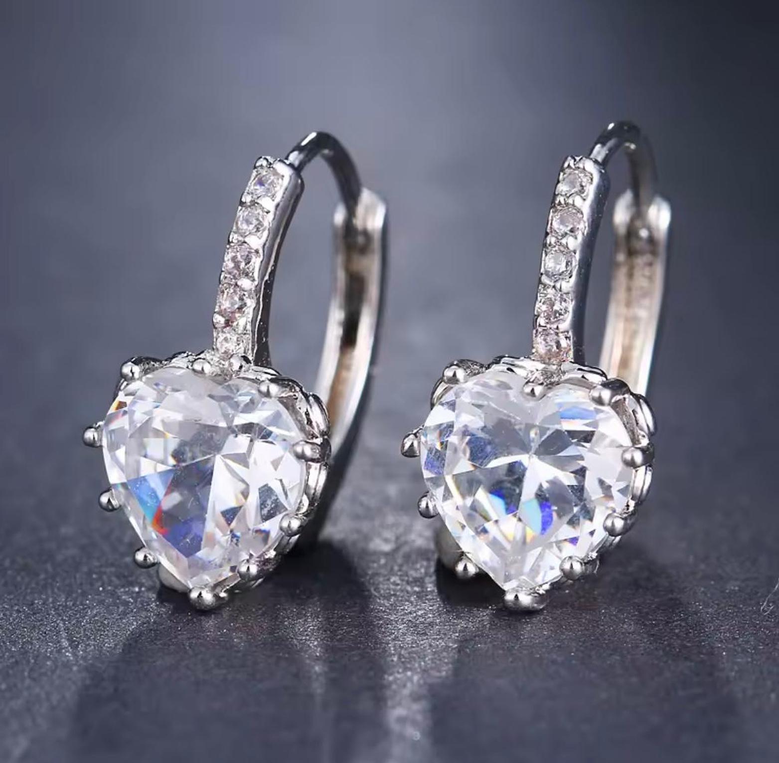 These charming huggie earrings feature a brilliant, perfectly cut heart-shaped solitaire stone suspended from a pave-detailed silver-toned hoop. They offer a comfortable fit with a dazzling, romantic sparkle.