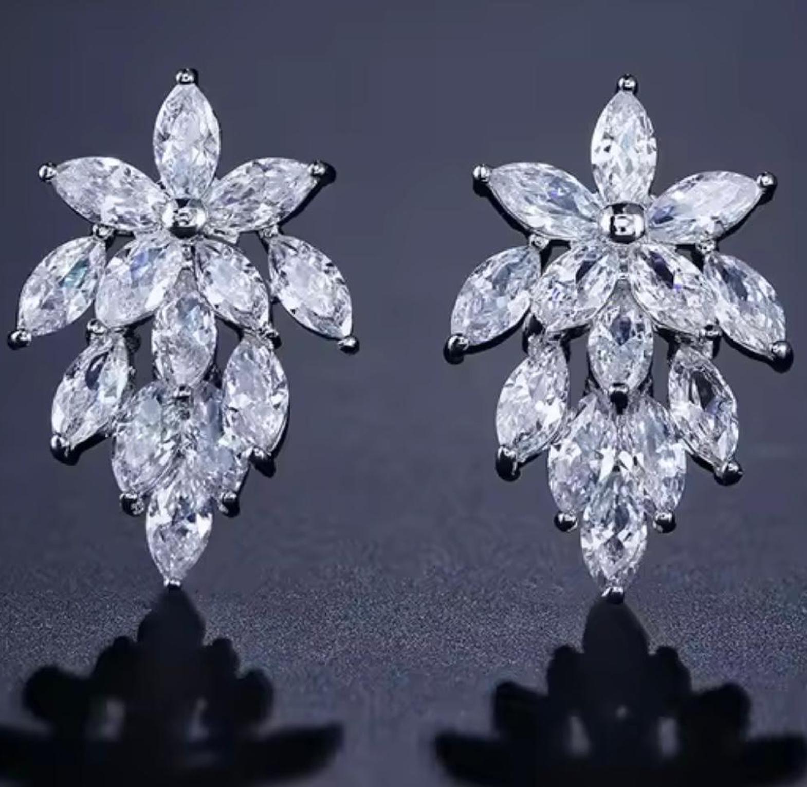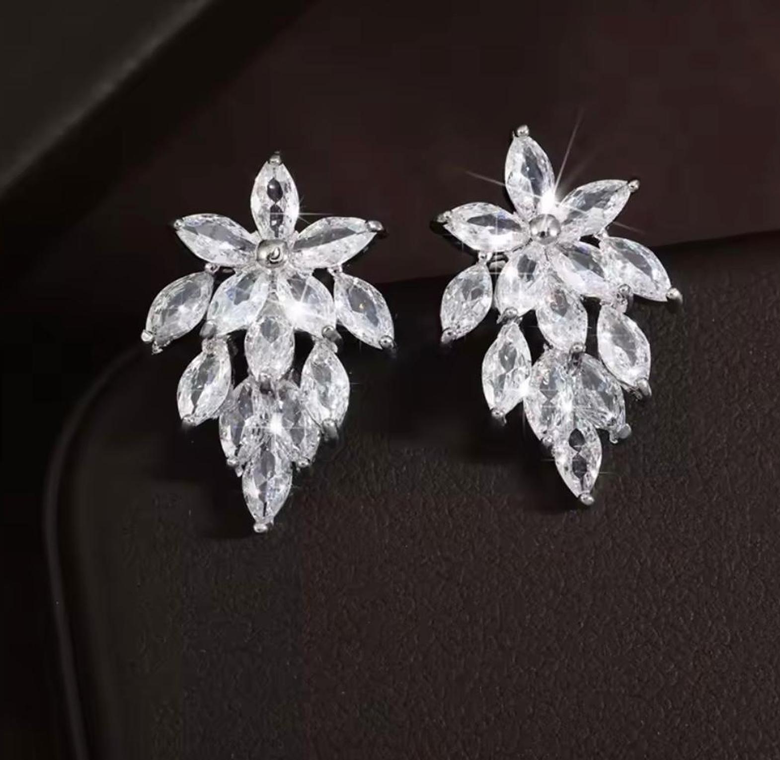 Channel the beauty of a garden in full bloom with these exquisite marquise-cut crystal earrings. Featuring a stunning tiered leaf silhouette and a brilliant silver-toned finish, these studs provide a sophisticated, light-catching statement for any formal or bridal look.