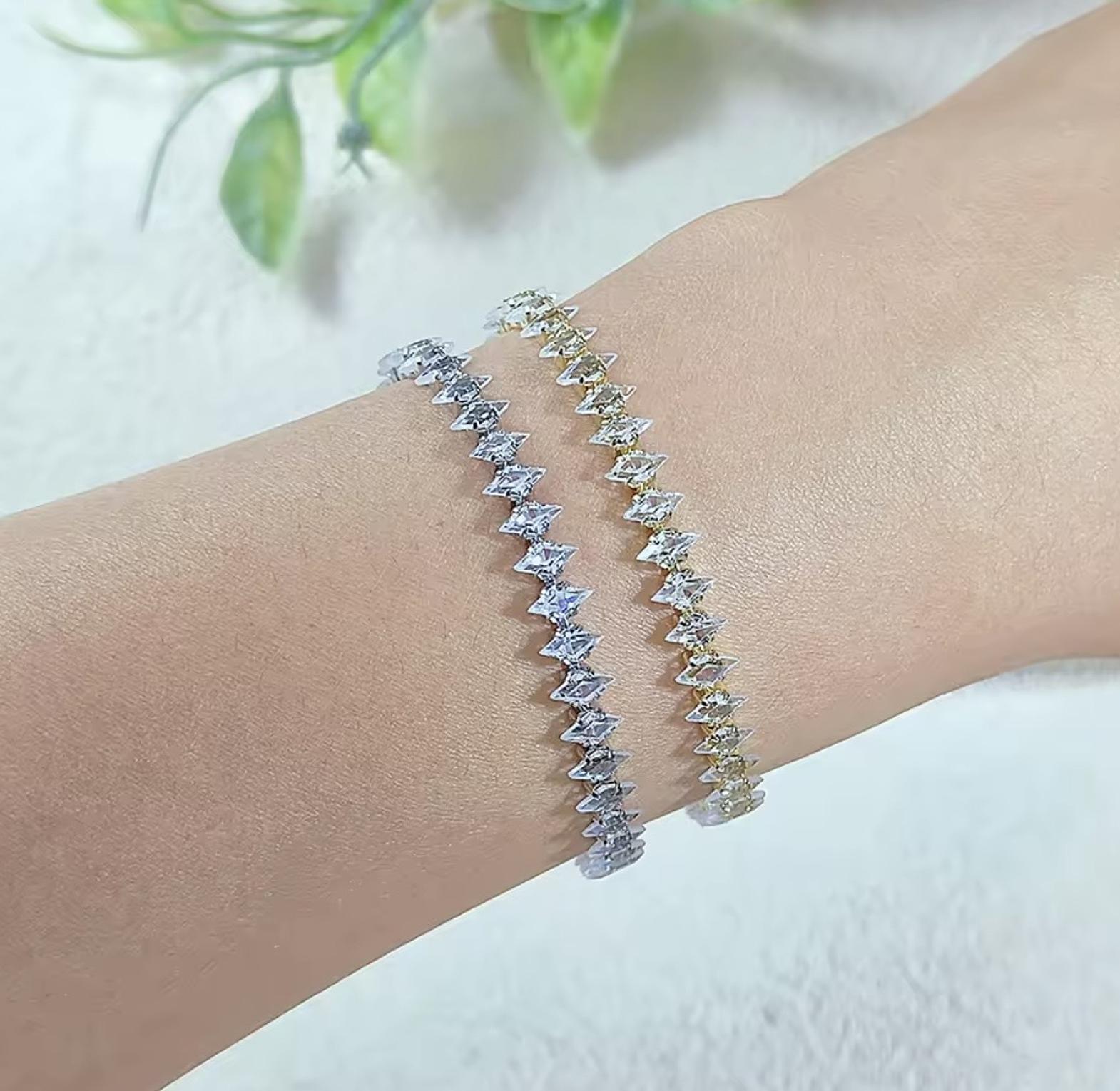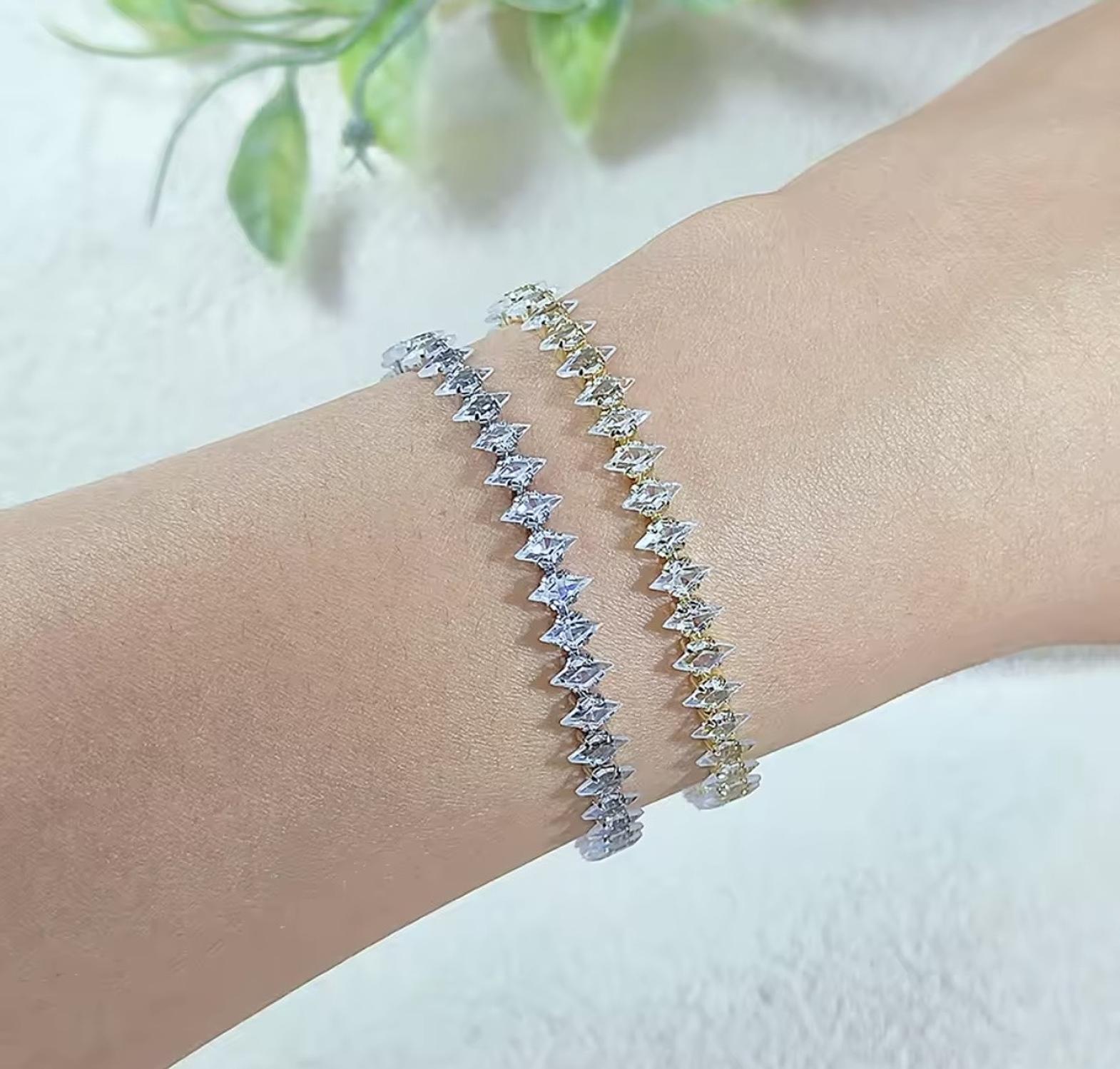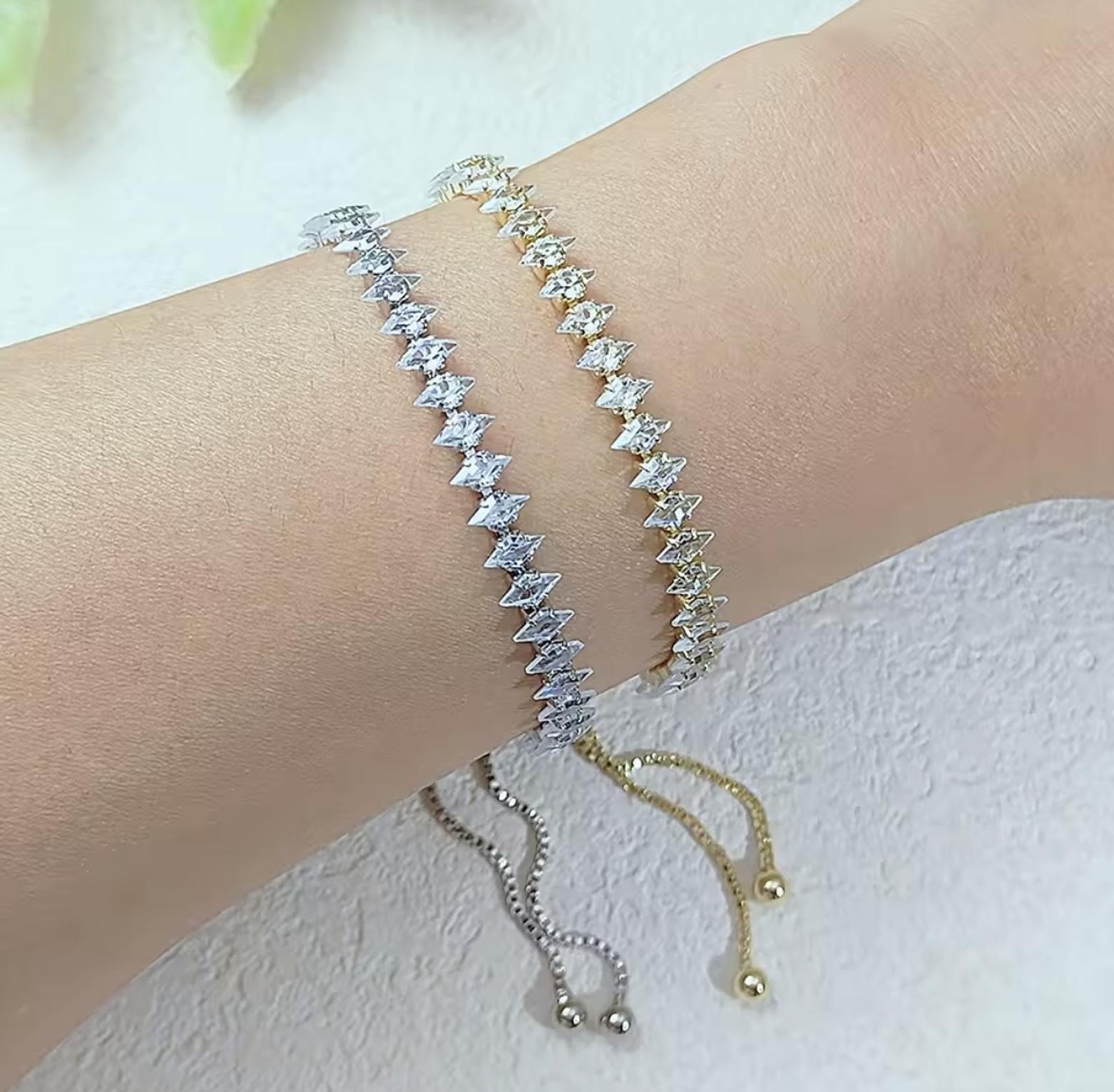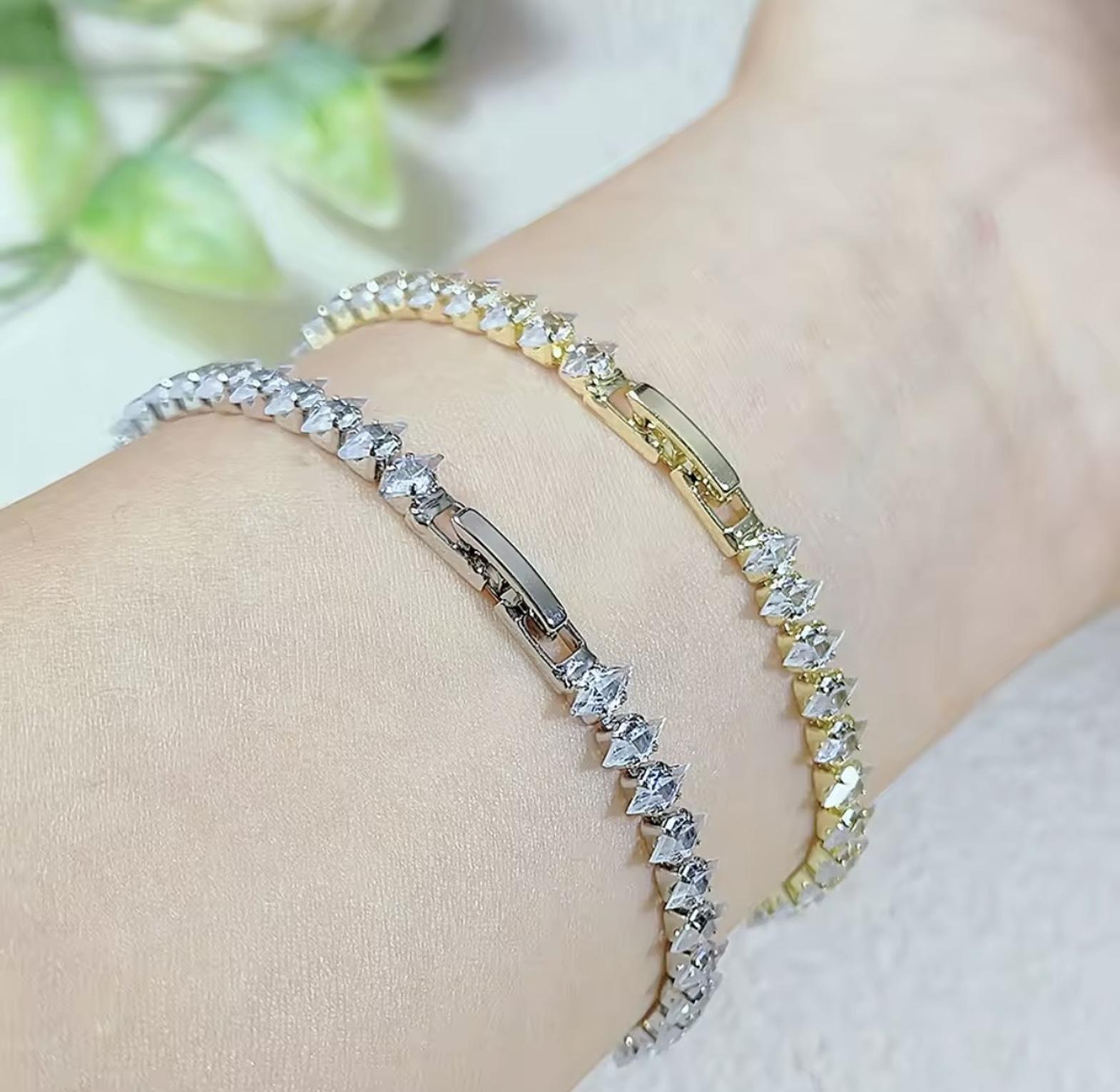 Add a touch of high-fashion brilliance to your wrist with these exquisite diamond-cut tennis bracelets. Featuring a continuous row of precision-set stones and a sleek adjustable finish, these bracelets are available in classic silver, radiant gold, and a vibrant multi-color palette.