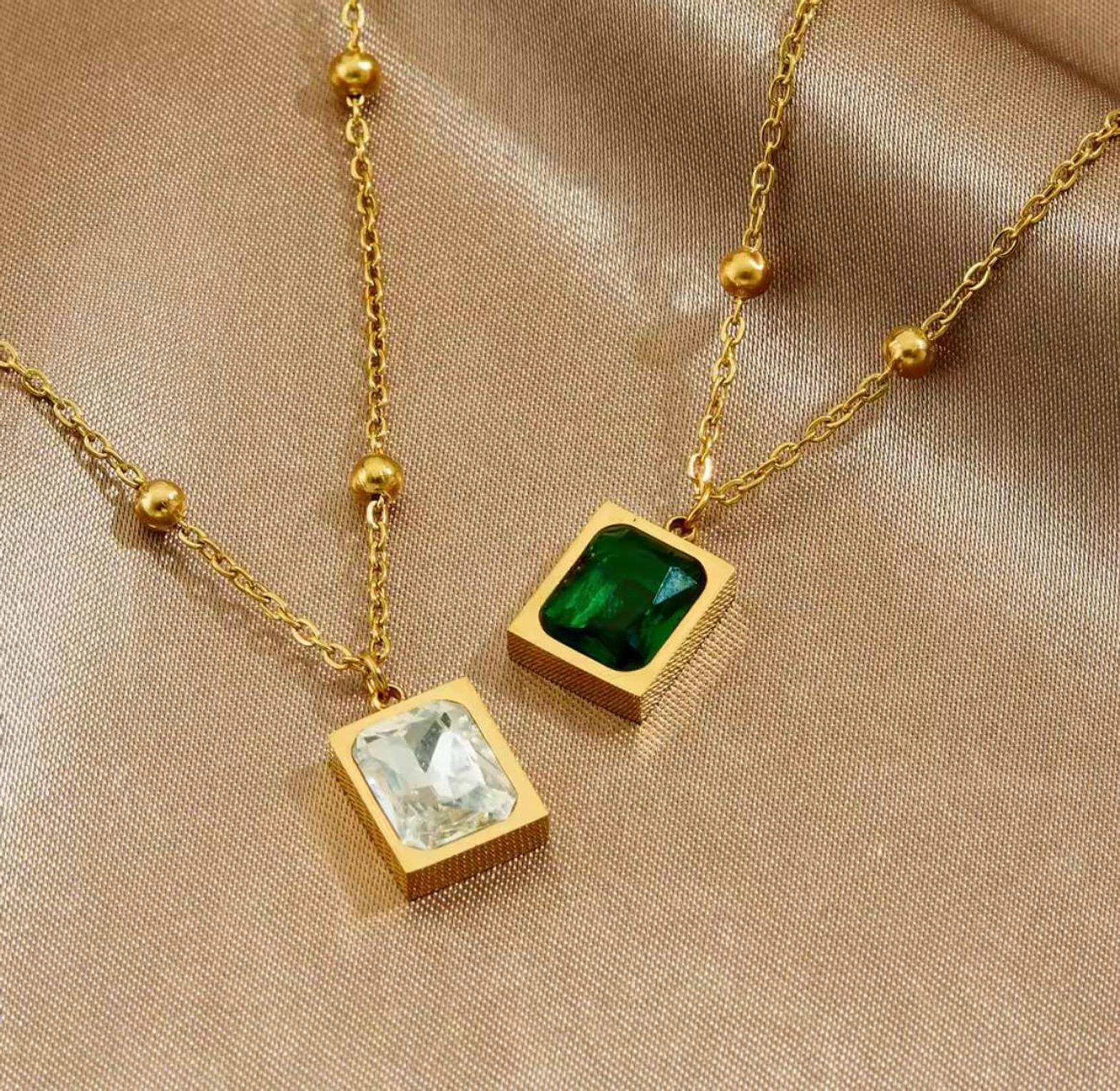Make a commanding statement with these striking emerald-cut pendants, blending bold geometric design with the brilliant sparkle of luxury gemstones. They are the ultimate accessories for the woman who appreciates refined, high-end glamour.