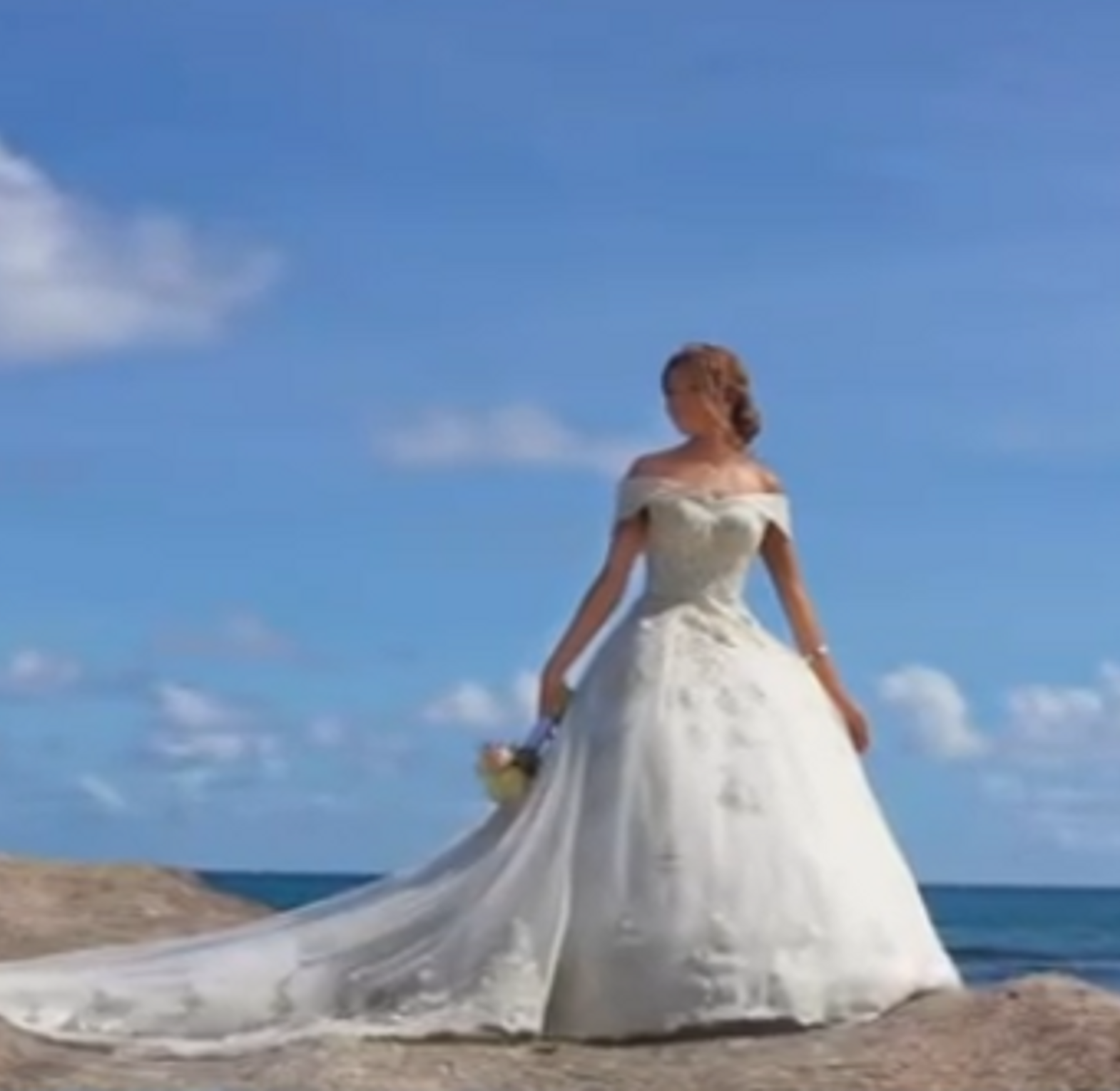 Embody timeless romance and effortless grace in this voluminous off-shoulder white gown, designed with a majestic sweeping train and delicate bodice detailing. Perfect for the bride planning a breathtaking destination or grand outdoor ceremony.