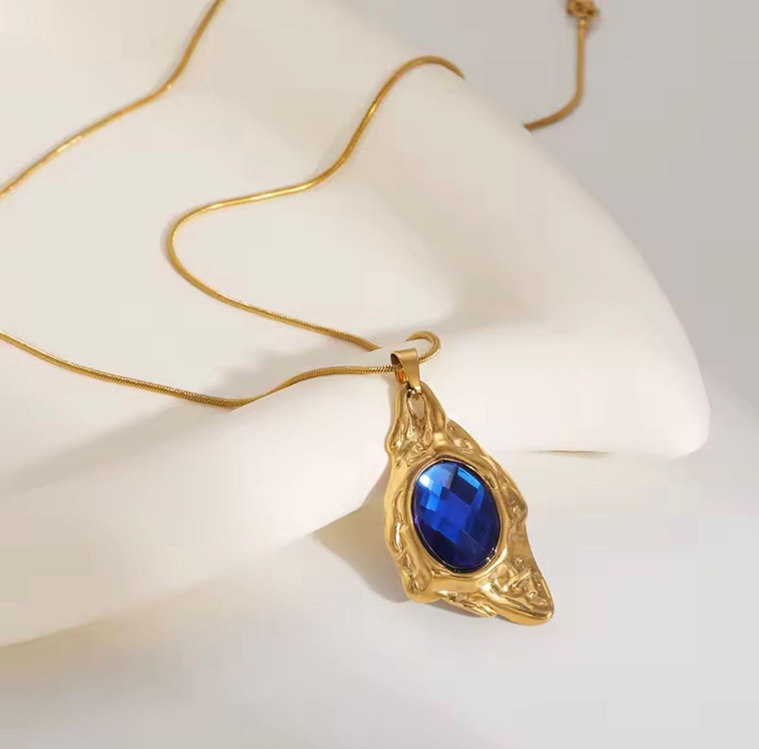 Radiate a majestic glow with this striking sapphire-inspired set, featuring deep cobalt crystals nestled in molten-textured gold. It is an opulent statement piece designed for those who command attention with a blend of vintage grandeur and modern artistry.
