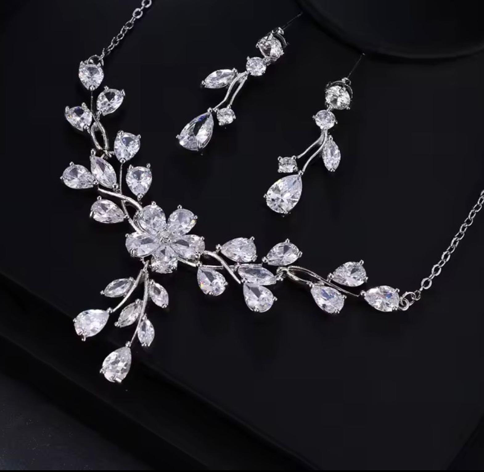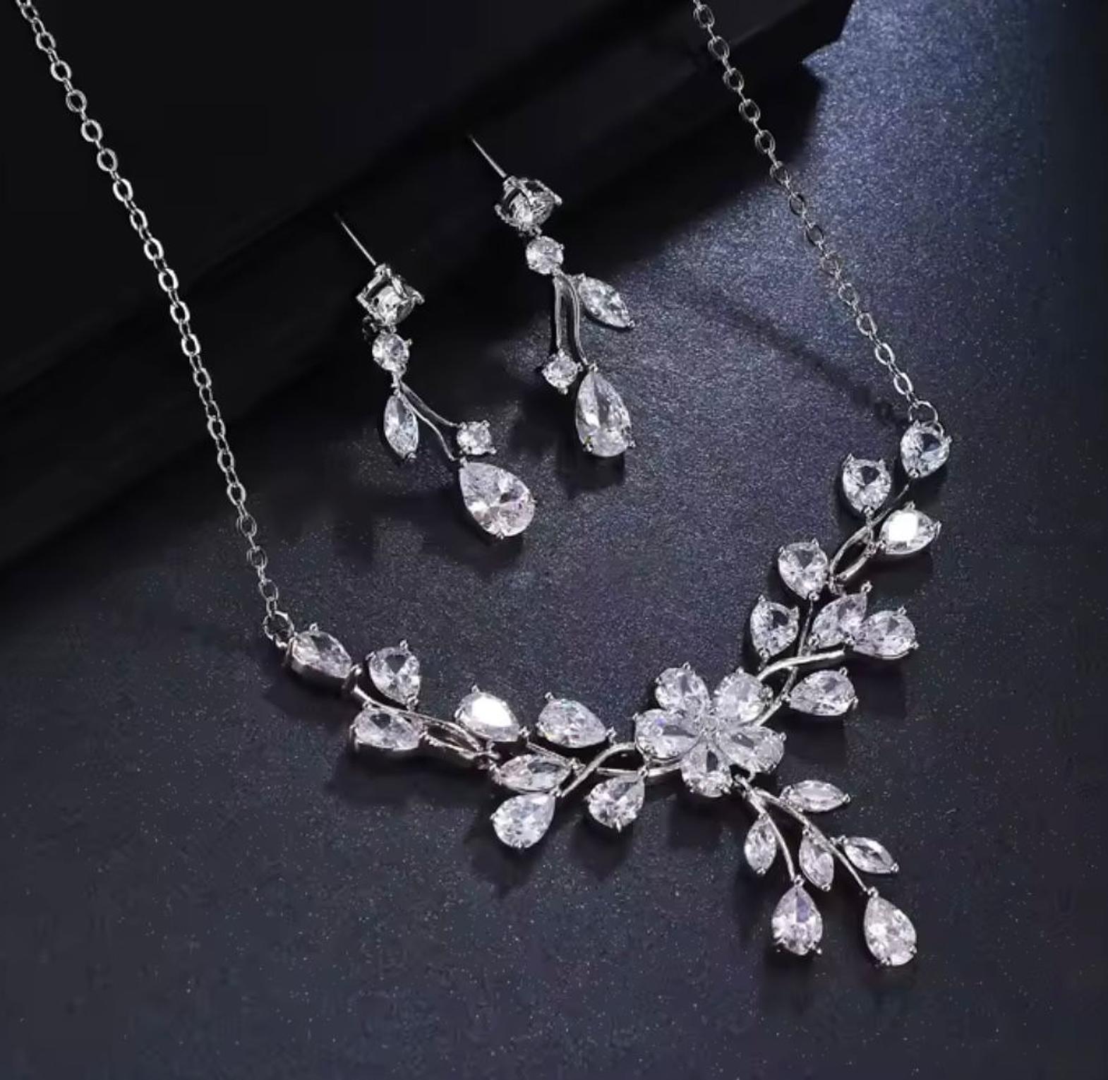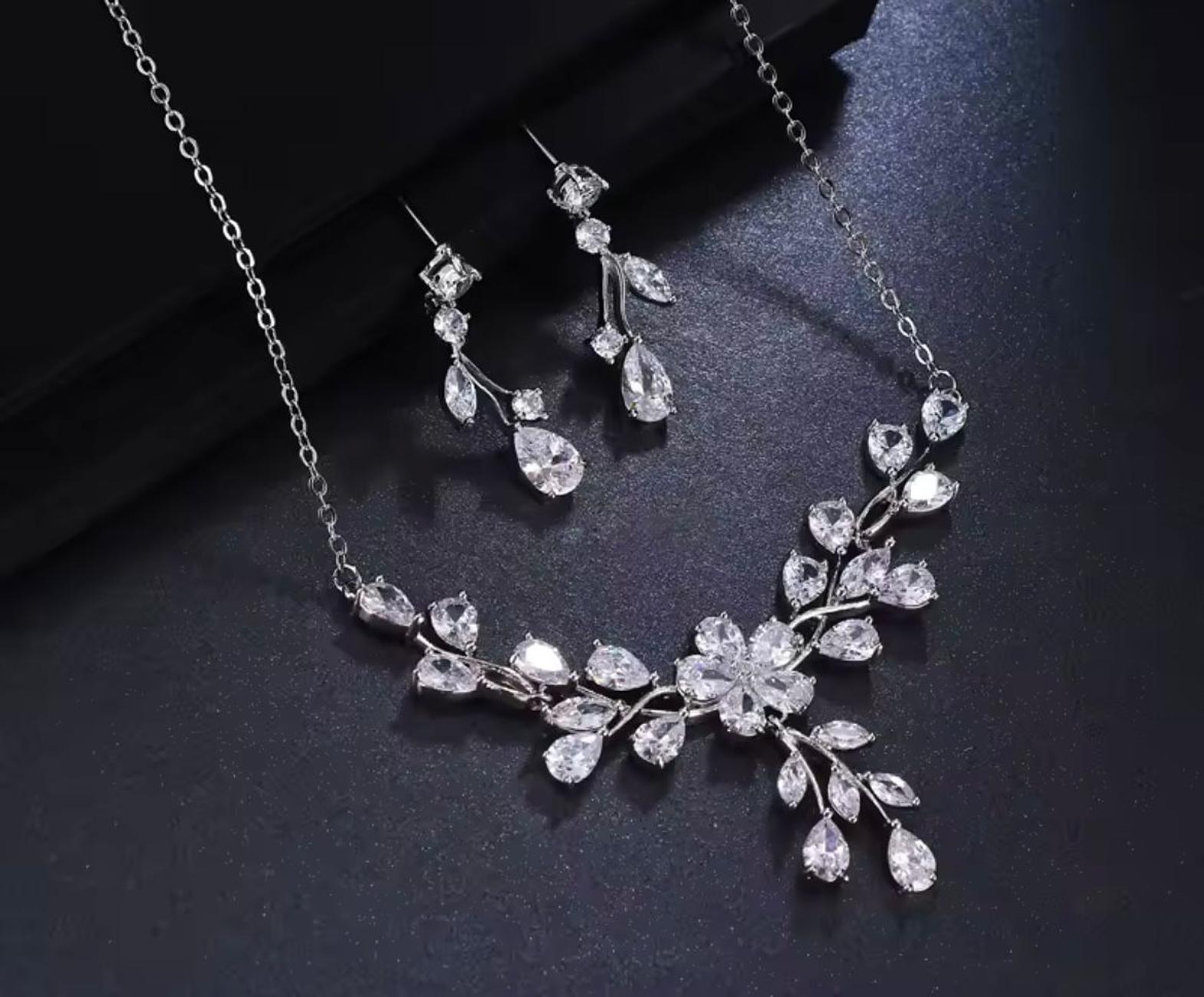 Adorn yourself with the whimsical beauty of a shimmering crystal vine, designed to capture the essence of a blooming spring garden. This hypoallergenic and non-tarnish set offers a radiant sparkle that effortlessly transitions from bridal elegance to evening glamour.