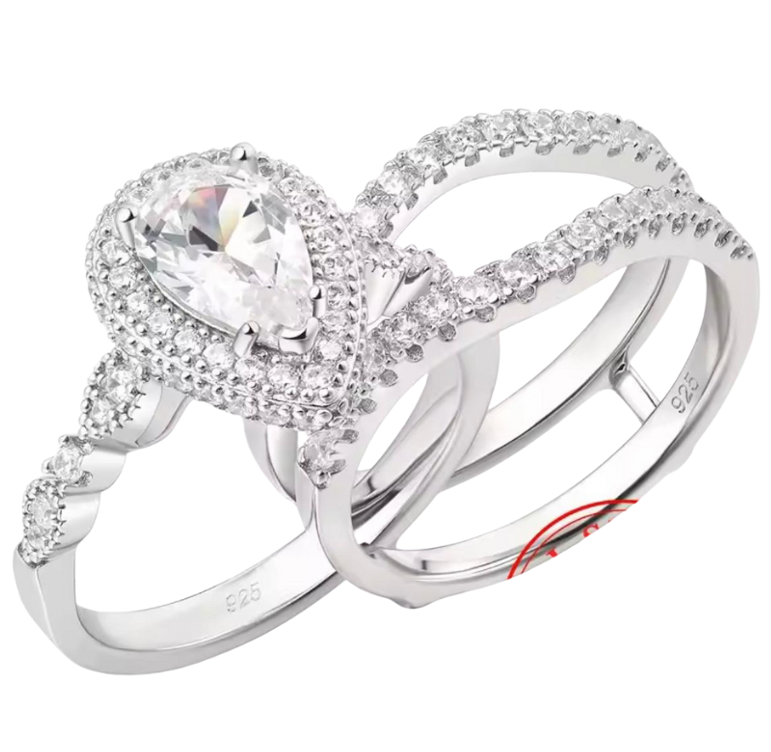 This magnificent two-piece bridal set is crafted from genuine S925 pure sterling silver, offering a timeless, brilliant white metal finish. The engagement ring features a dazzling pear-cut cubic zirconia halo, complemented by a perfectly contoured, pave-set band.