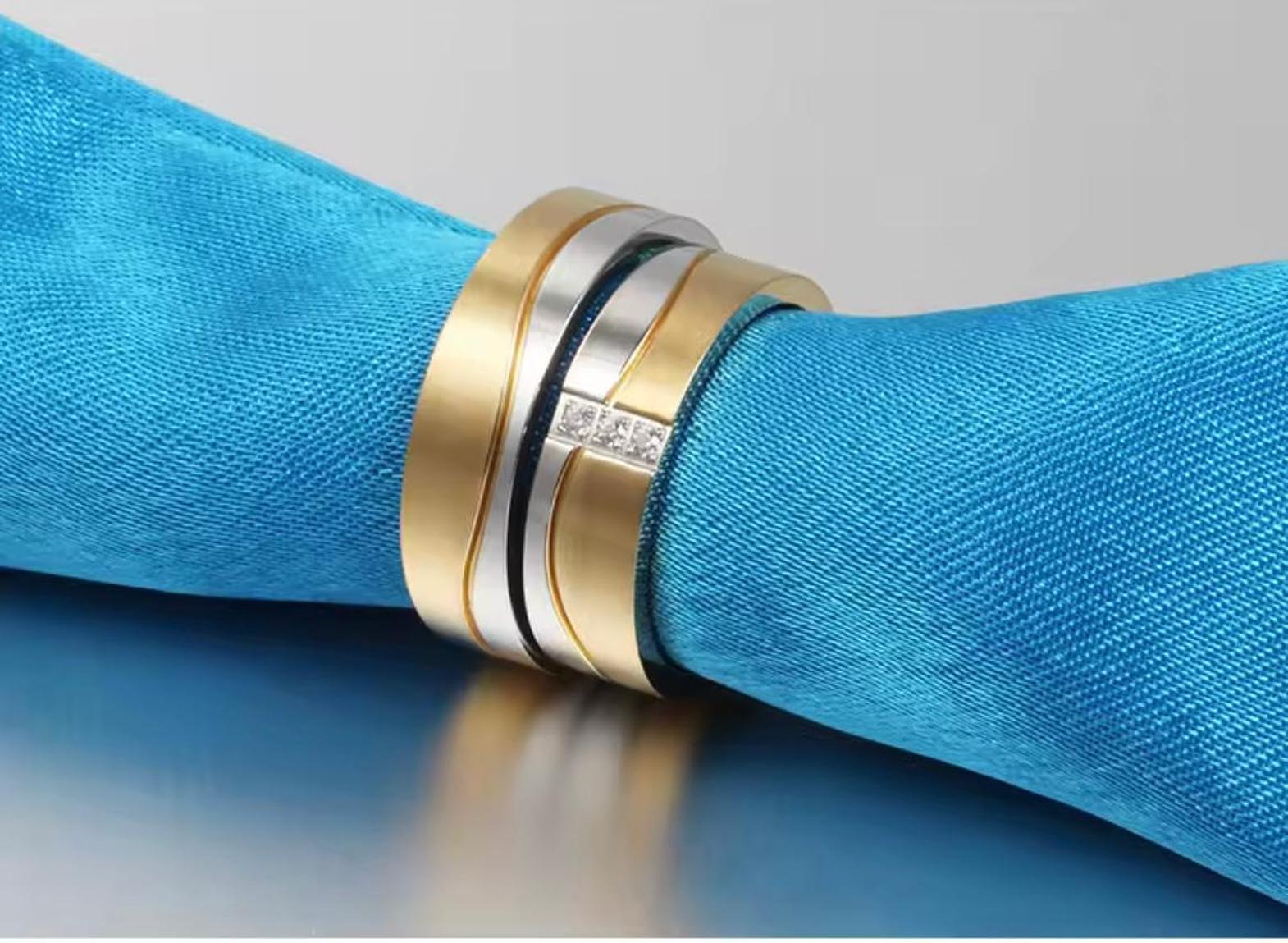 This sophisticated 6mm band masterfully combines a high-polish silver tone with vibrant IP gold plating in a striking two-tone design, sold individually. The female style is enhanced by a square setting of brilliant AAA cubic zirconia stones for an elevated sparkle. Men sizes 7-12, Ladies sizes 5-9