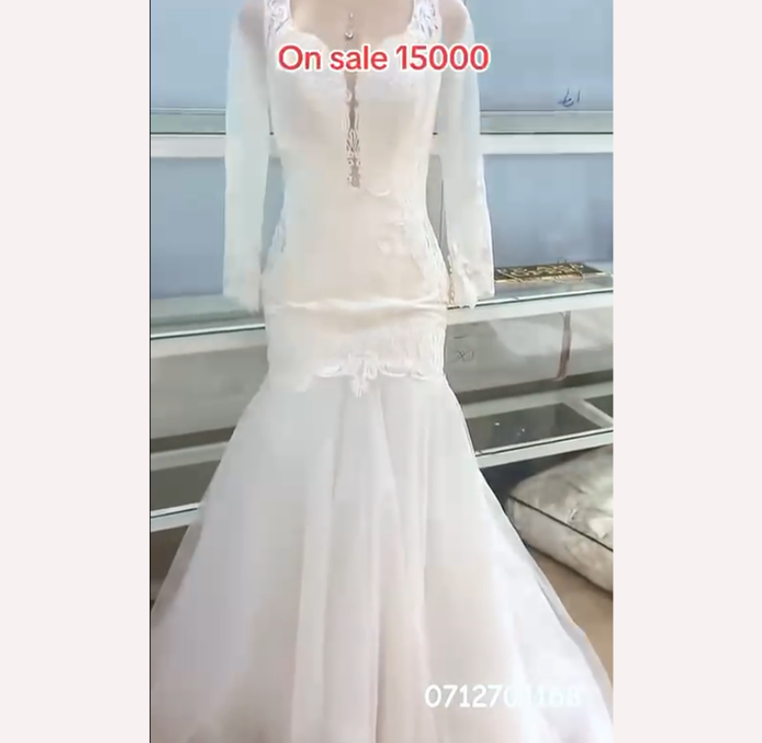 This elegant mermaid gown offers a flattering fit, featuring a sleek bodice and delicate long illusion sleeves for beautiful coverage. Subtle lace appliqués detail the waist and bust, creating a sophisticated and romantic silhouette with a touch of modern allure.
