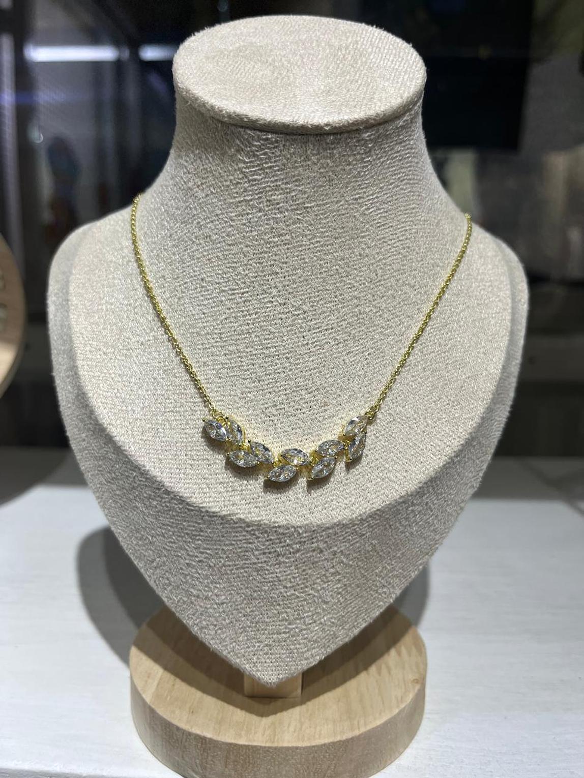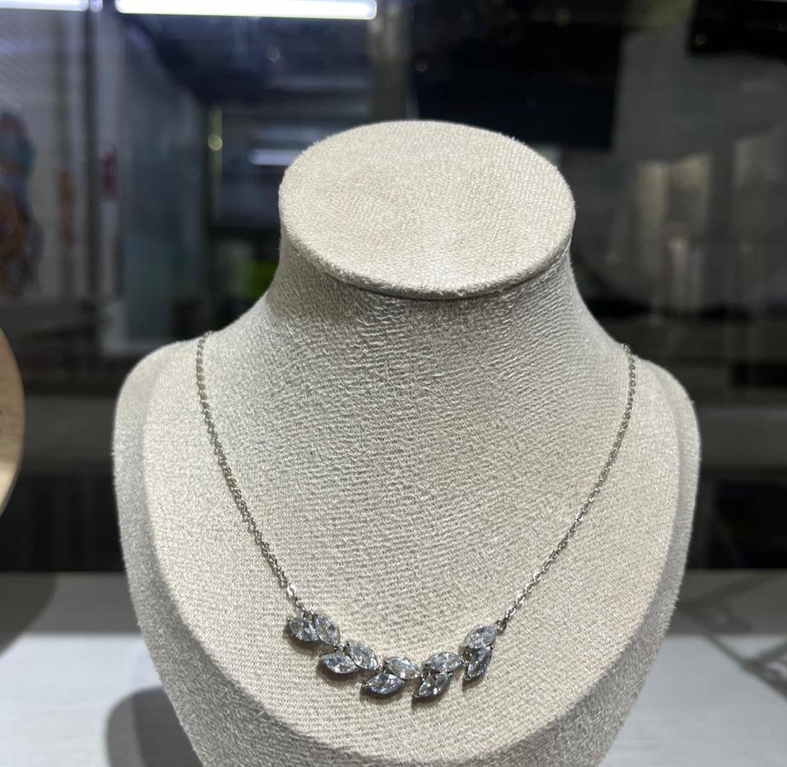 This elegant piece features a graceful, curved cluster of brilliant marquise-cut zirconia stones arranged in a delicate leaf-like pattern. It is offered in stunning variants of both classic silver and polished rose gold finishes for versatile styling.