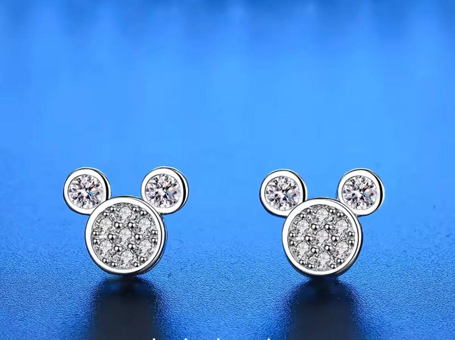 These delightful pure sterling silver stud earrings feature an iconic, playful mouse silhouette crafted for those who embrace cheerful style. Each section is set with shimmering white stones, delivering a luminous sparkle perfect for all ages.