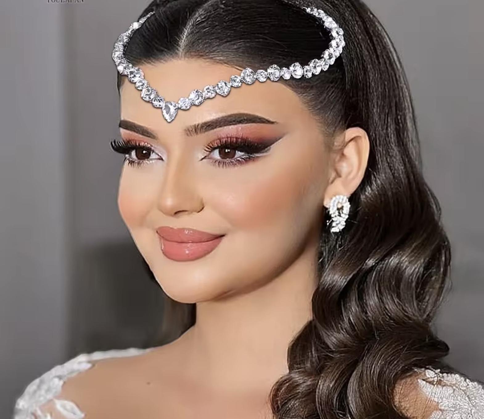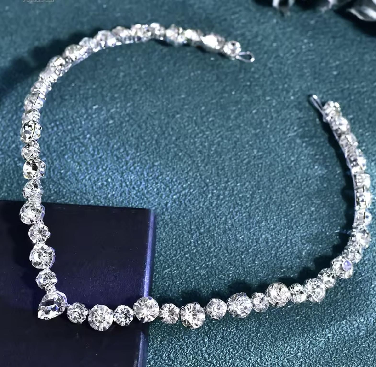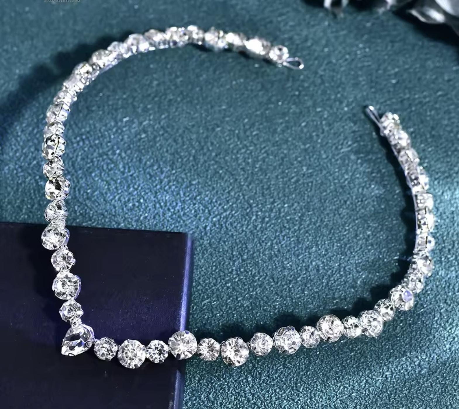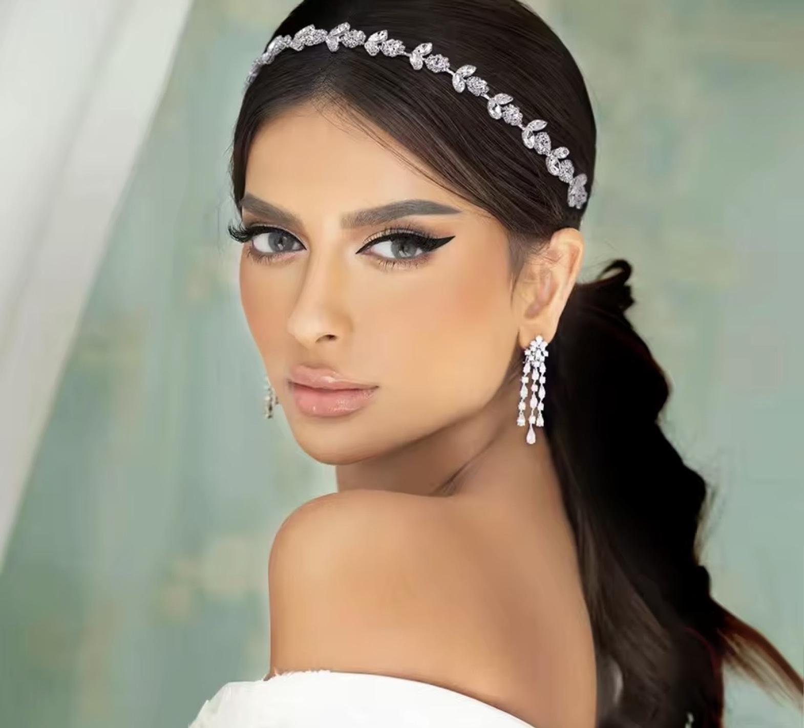 This magnificent, flexible hair vine is intricately detailed with a sweeping leafed pattern, featuring dozens of brilliant, clear crystals. Its versatile design allows it to be worn as an elegant brow band, woven into an updo, or used as a sash.