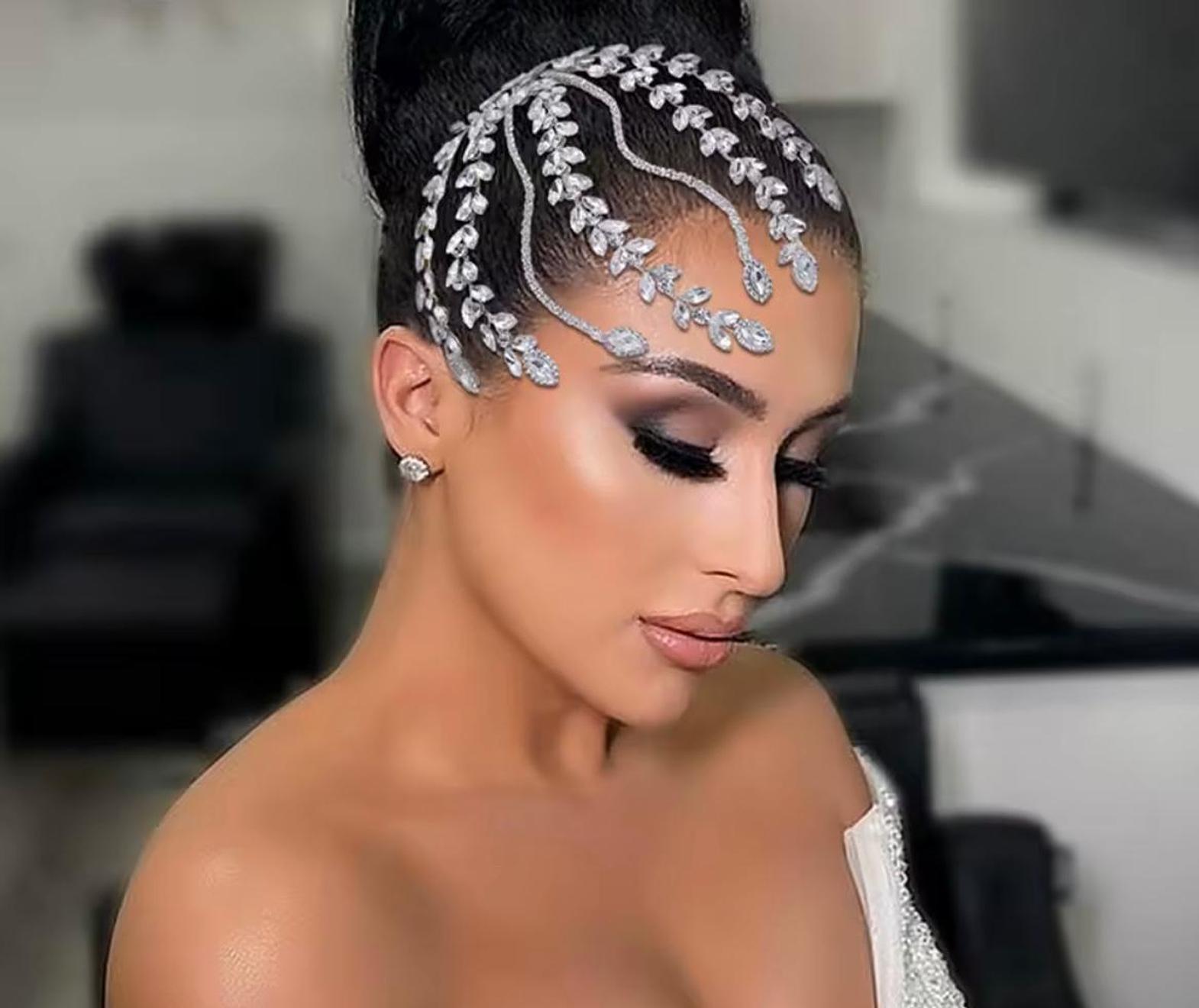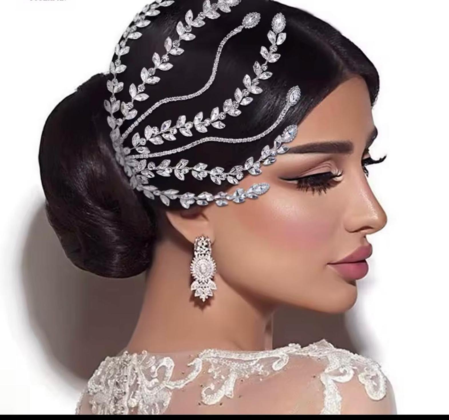 This magnificent bridal hair vine features five cascading, flexible strands beautifully crafted from leafs of brilliant marquise-cut crystals. The central comb design creates a stunning, fan-like silhouette, finished in a luminous white colour setting.