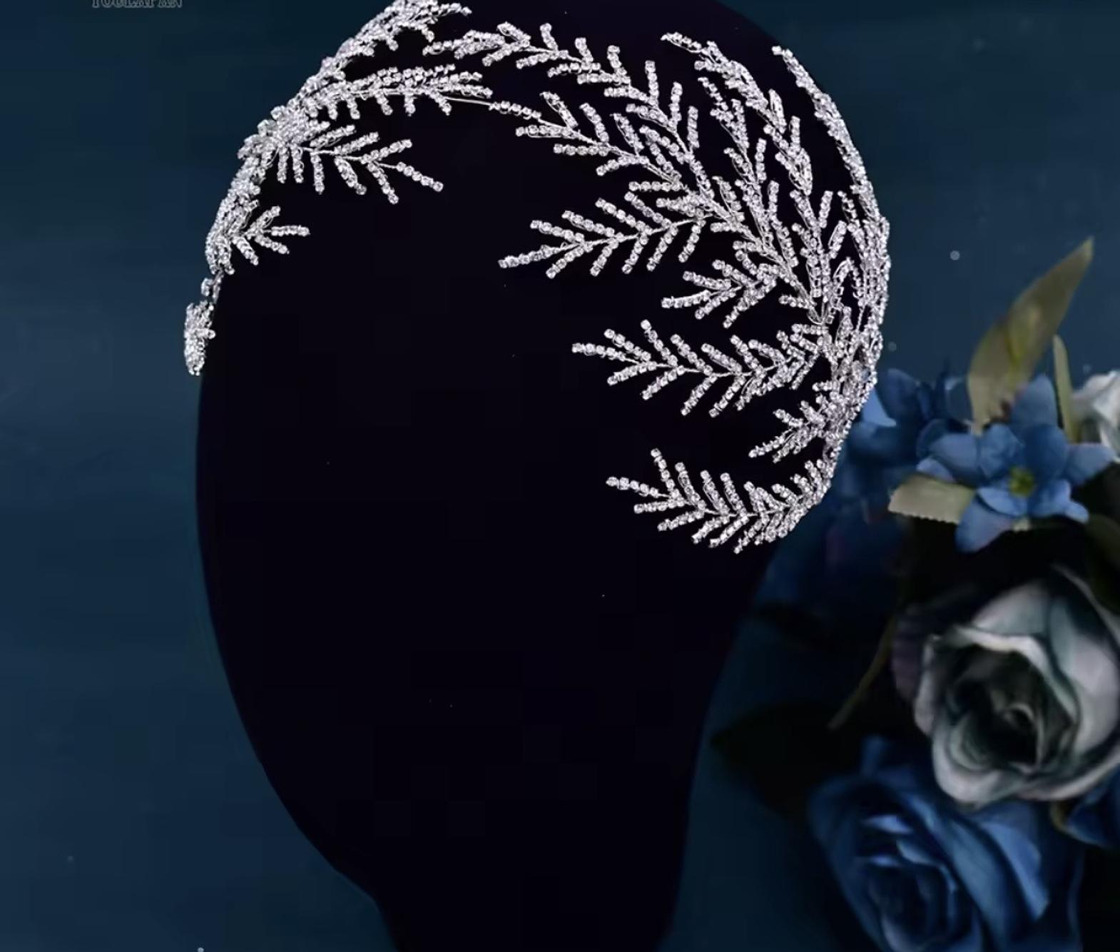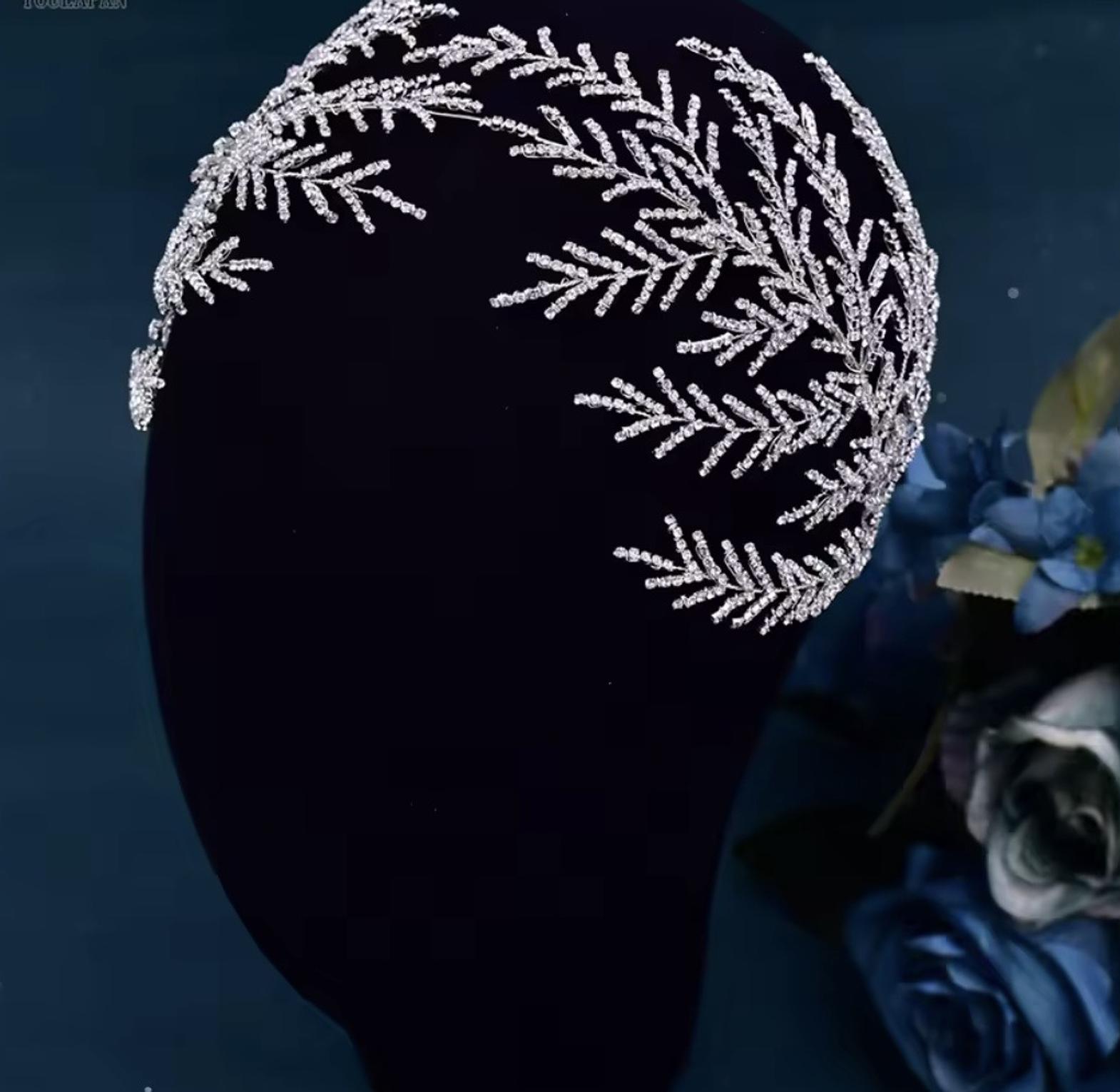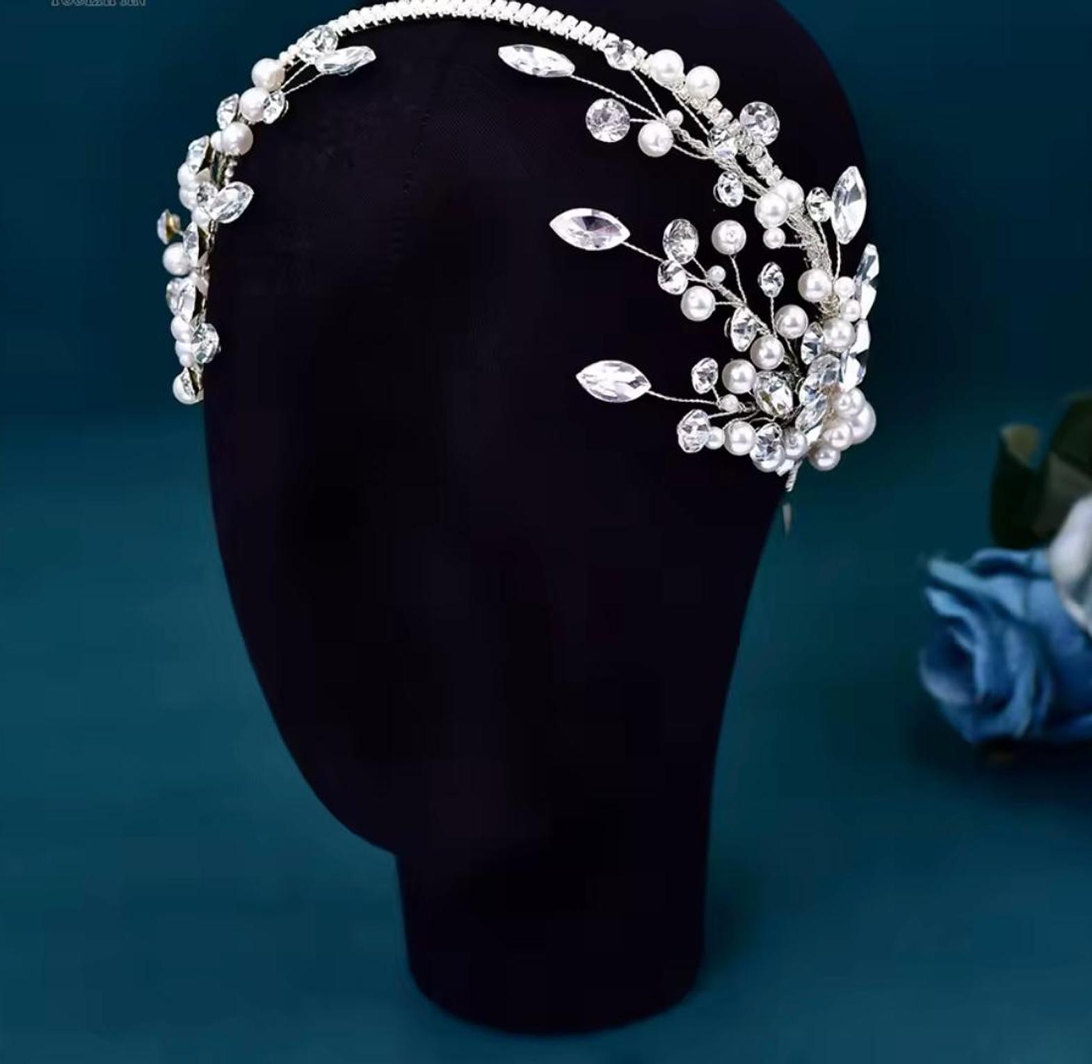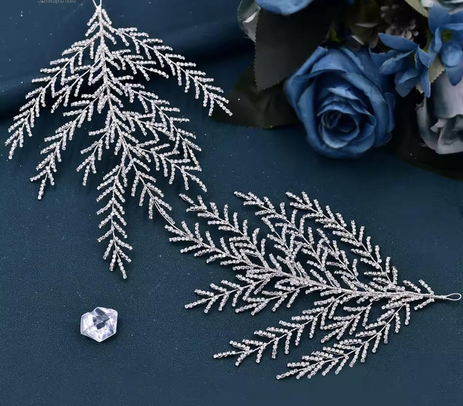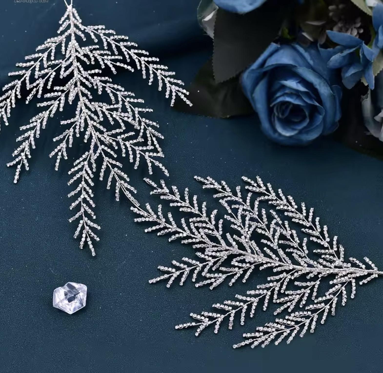This beautiful bridal hair vine is exquisitely crafted from shiny crystals shaped in vine leaves and accented with luminous pearls. The delicate, flexible tiara design provides an unforgettable sparkle for your wedding day ensemble.