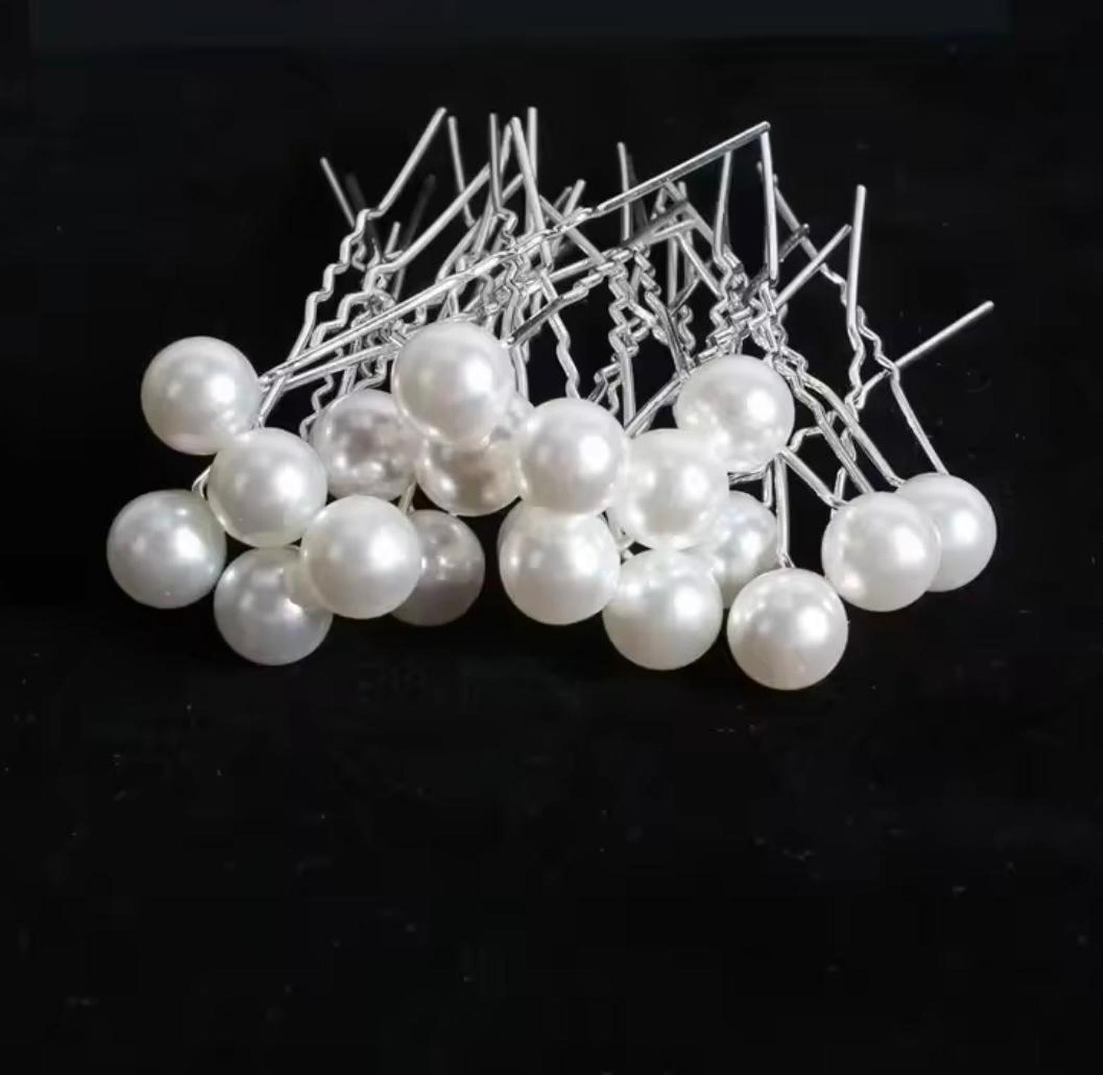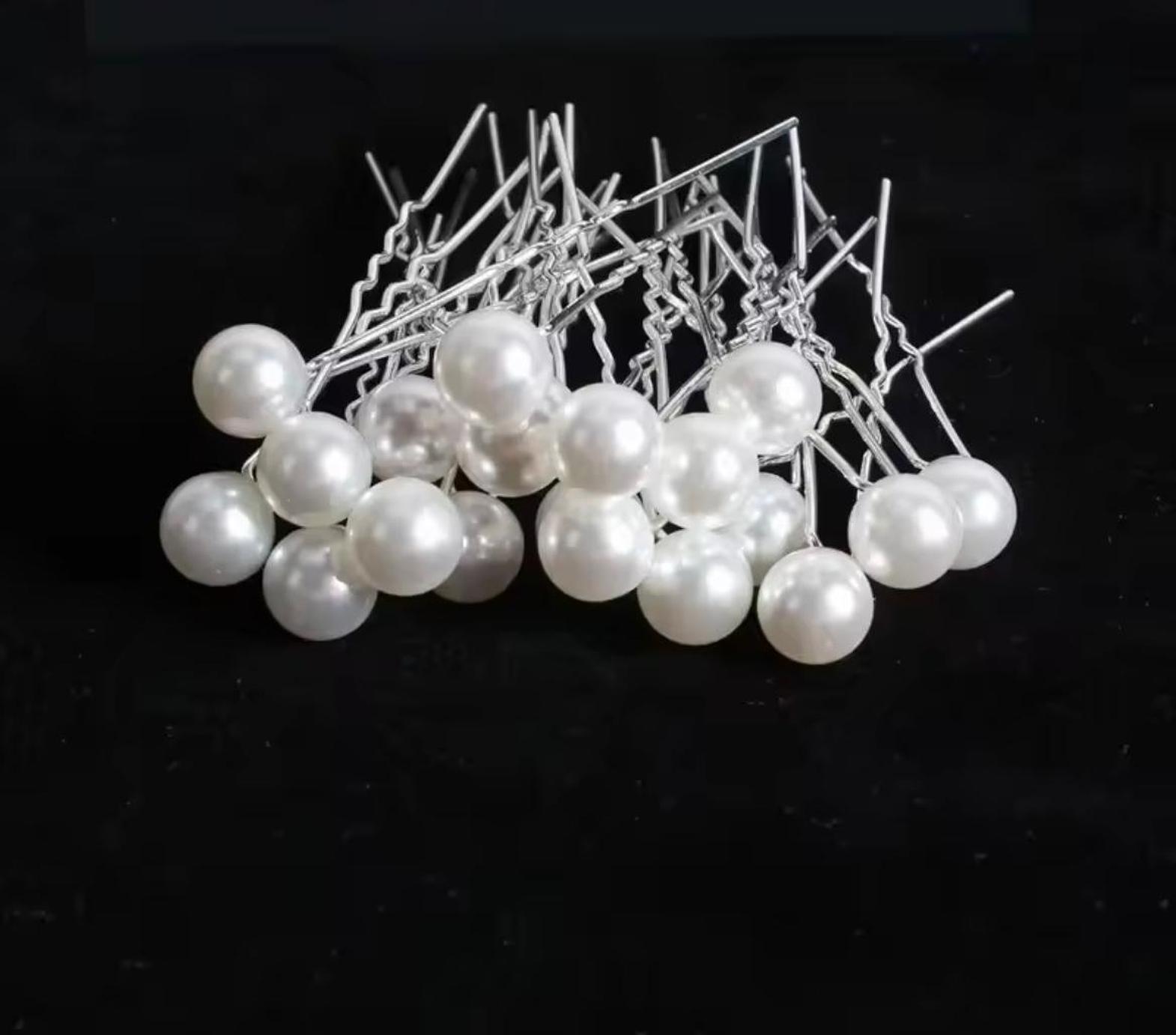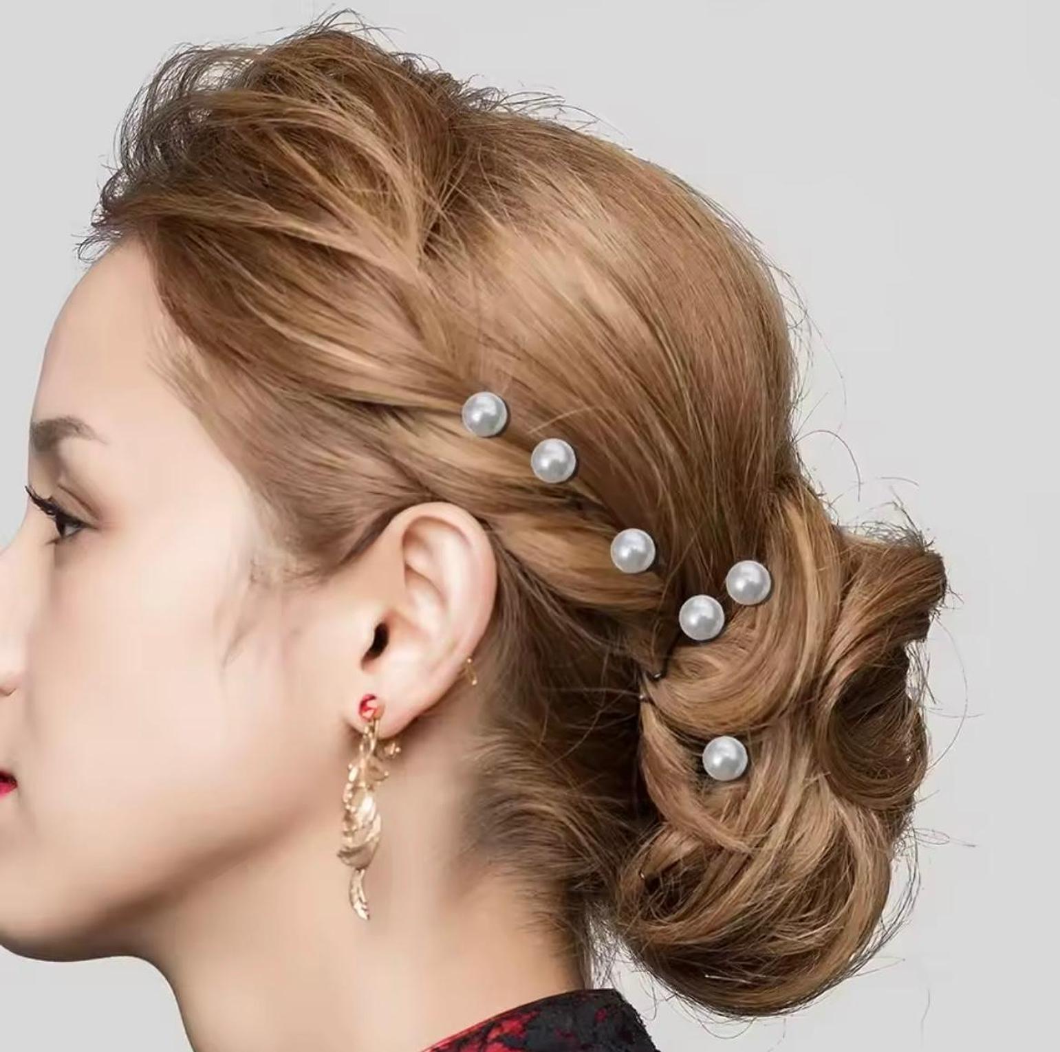These elegant hair pins feature a generous, perfectly rounded imitation pearl that delivers a statement of pure, timeless sophistication. Ideal for creating a scattered effect or a concentrated cluster of luminous shine in any hairstyle. 2 pins for 100