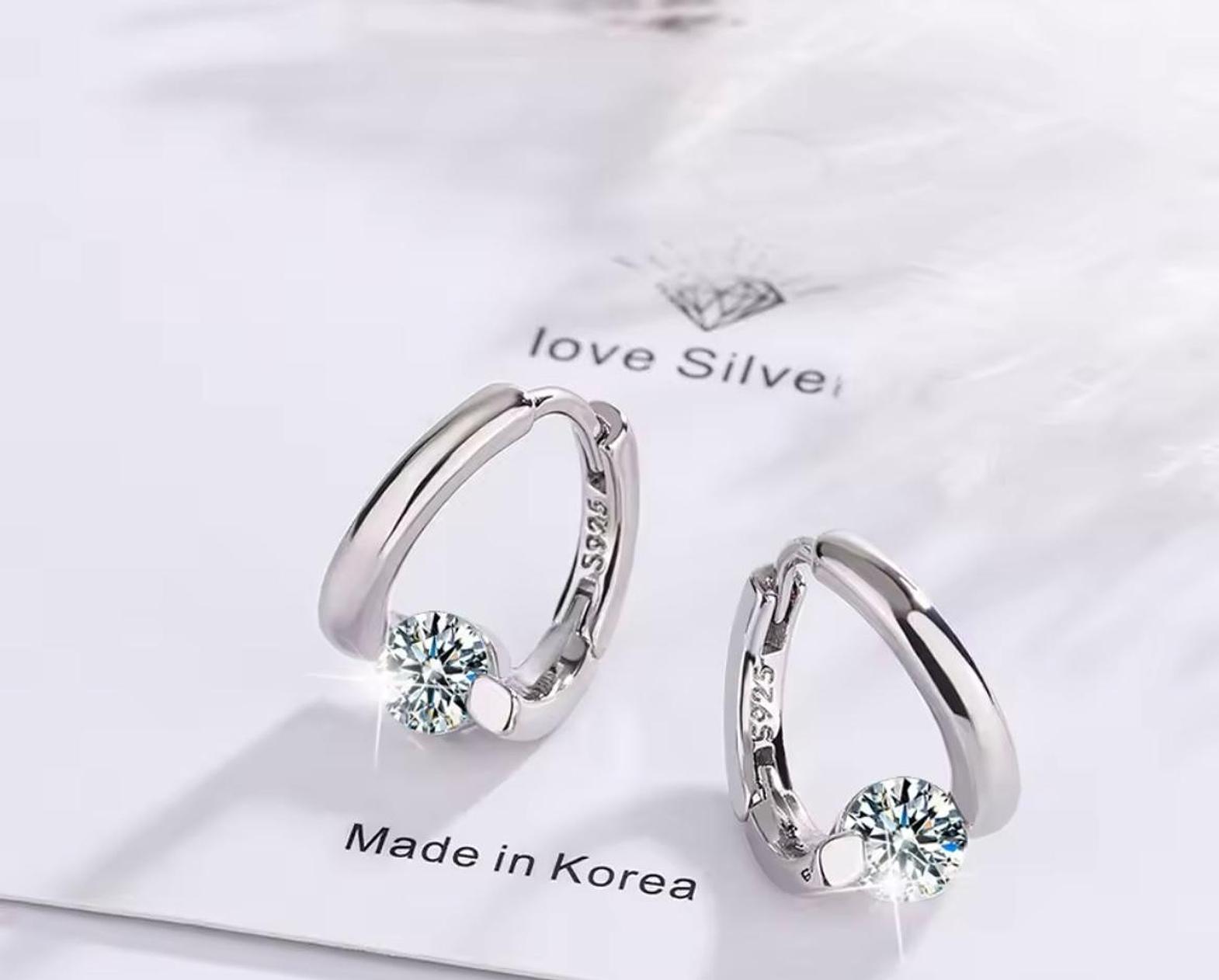 Add a touch of sophisticated sparkle to your everyday look with these minimalist huggie hoops featuring a brilliant, precision-cut solitaire crystal. Their sleek, contoured design offers a seamless blend of modern elegance and timeless charm.