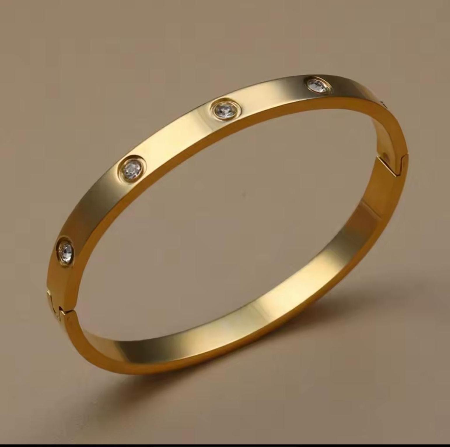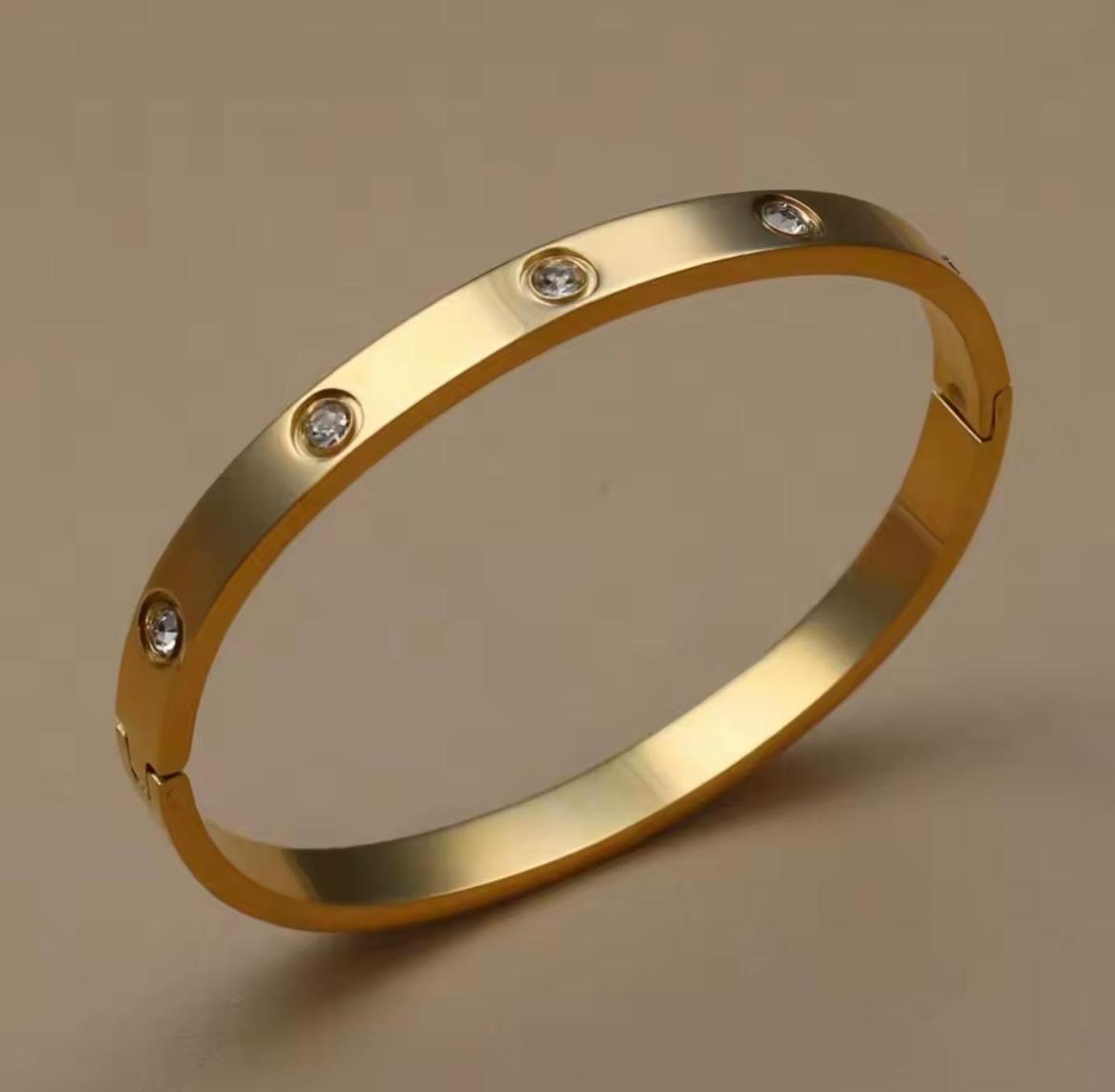 This sleek, gold-plated bangle is punctuated by brilliant bezel-set cubic zirconia stones for continuous, subtle sparkle. Crafted with hypoallergenic properties, this durable piece offers both luxury appeal and comfortable, everyday wear.