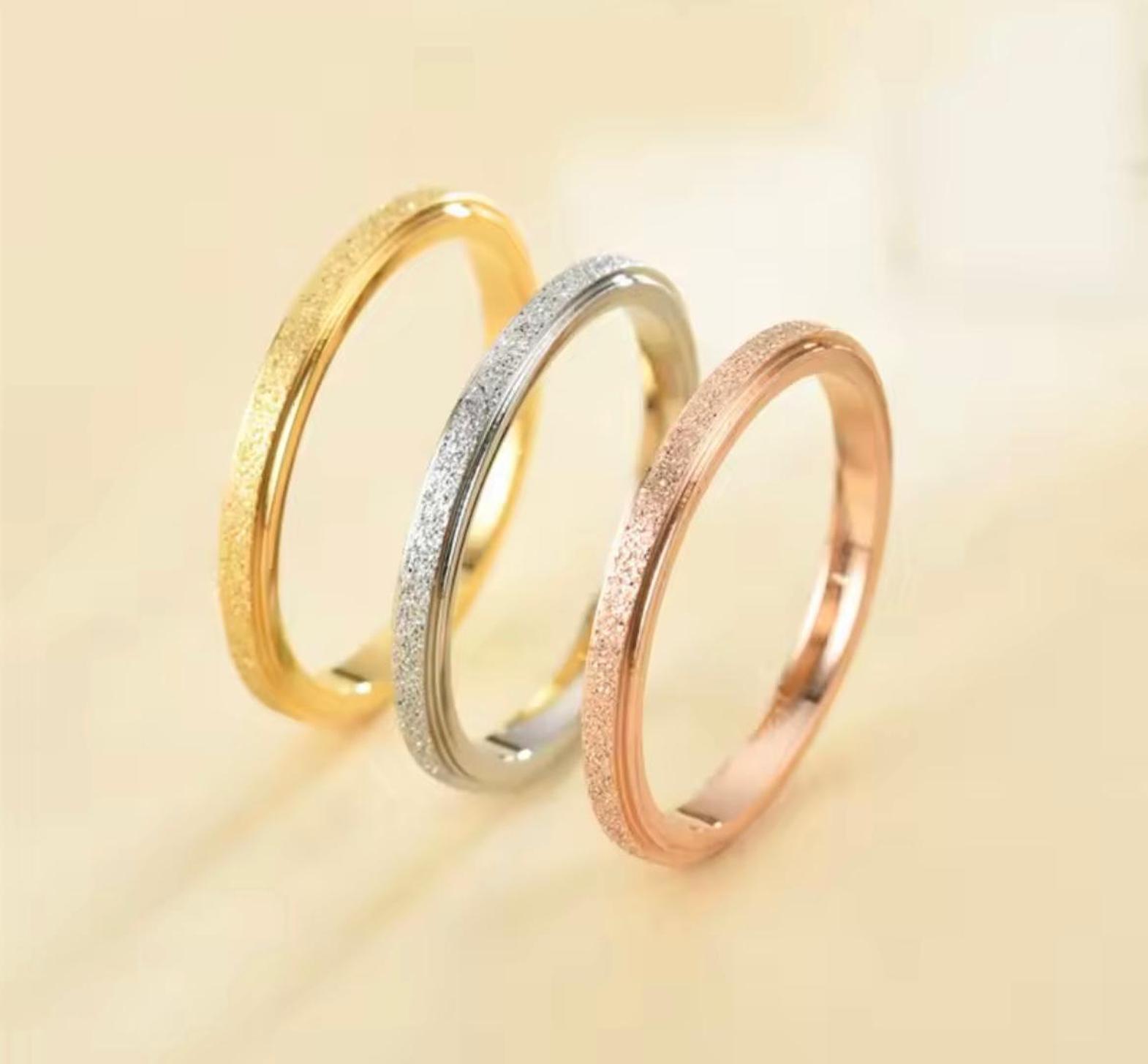 Elevate your everyday stacking game with these refined stainless steel bands, featuring a unique dual-texture finish. A delicate frosted "stardust" texture meets a high-polish metallic edge, creating a subtle yet captivating shimmer for the modern minimalist.