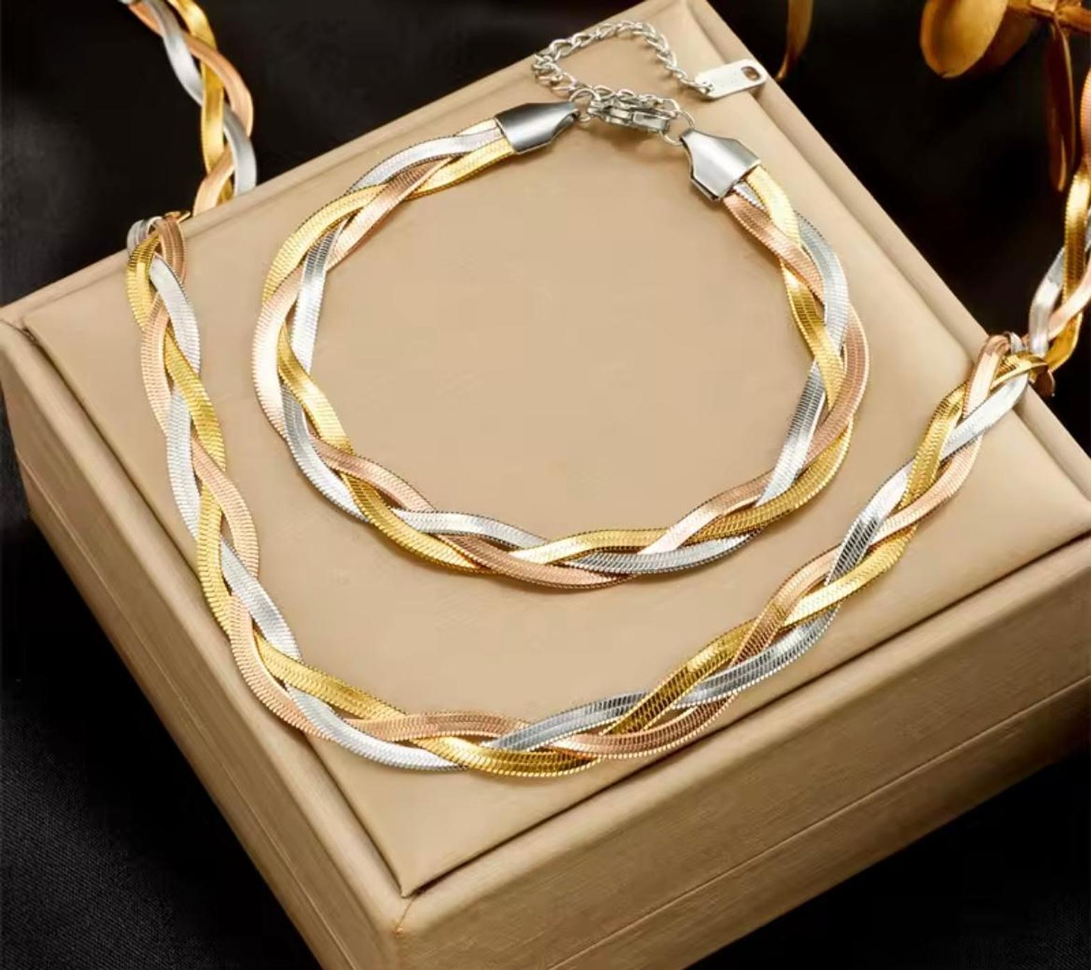 Indulge in the ultimate expression of golden luxury with this masterfully woven set, designed to drape like liquid silk against your skin. A radiant duo that commands attention with its intricate texture and high-fashion silhouette.