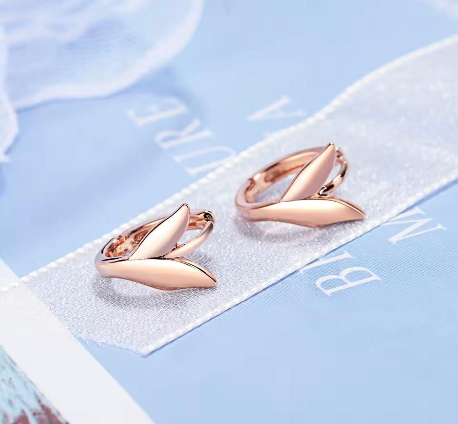 Infuse your daily attire with a touch of organic elegance through these beautifully contoured rose gold huggie hoops. Featuring a delicate petal-leaf silhouette, they offer a subtle, nature-inspired charm that radiates feminine grace and modern simplicity.