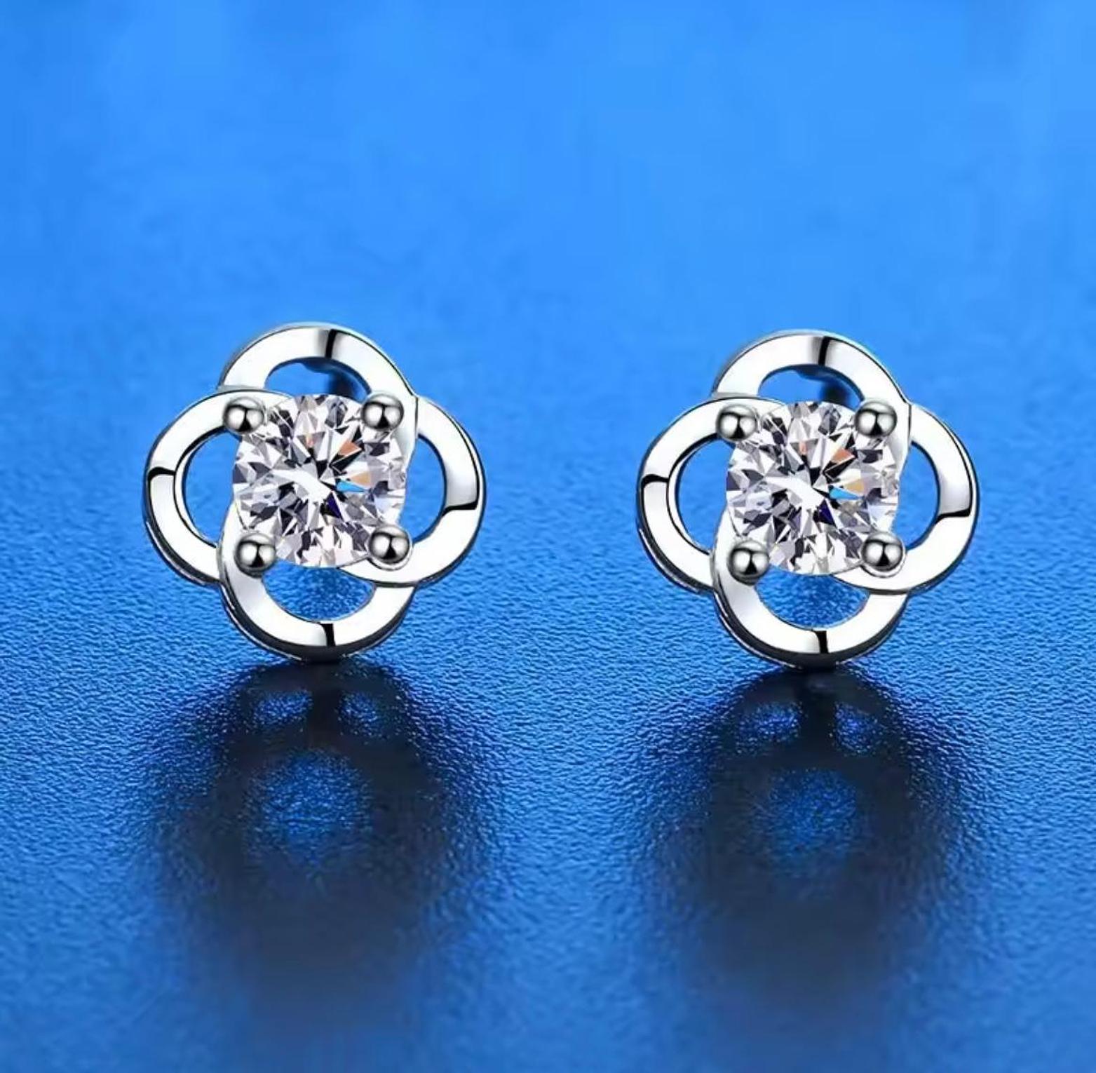 These exquisite studs are crafted from pure silver and showcase a modern quatrefoil design that frames a dazzling center stone. The flowing, interconnected loops create a refined clover silhouette, symbolizing luck and everlasting style.