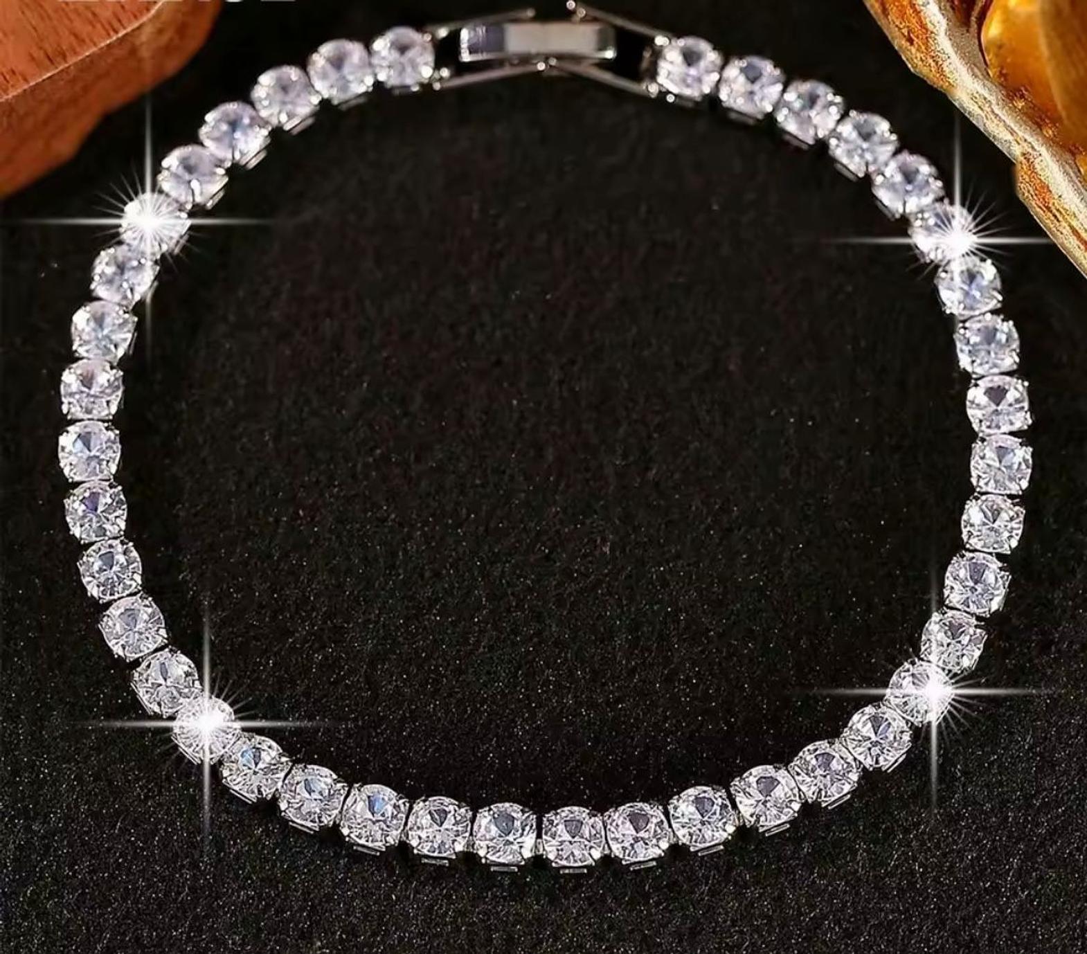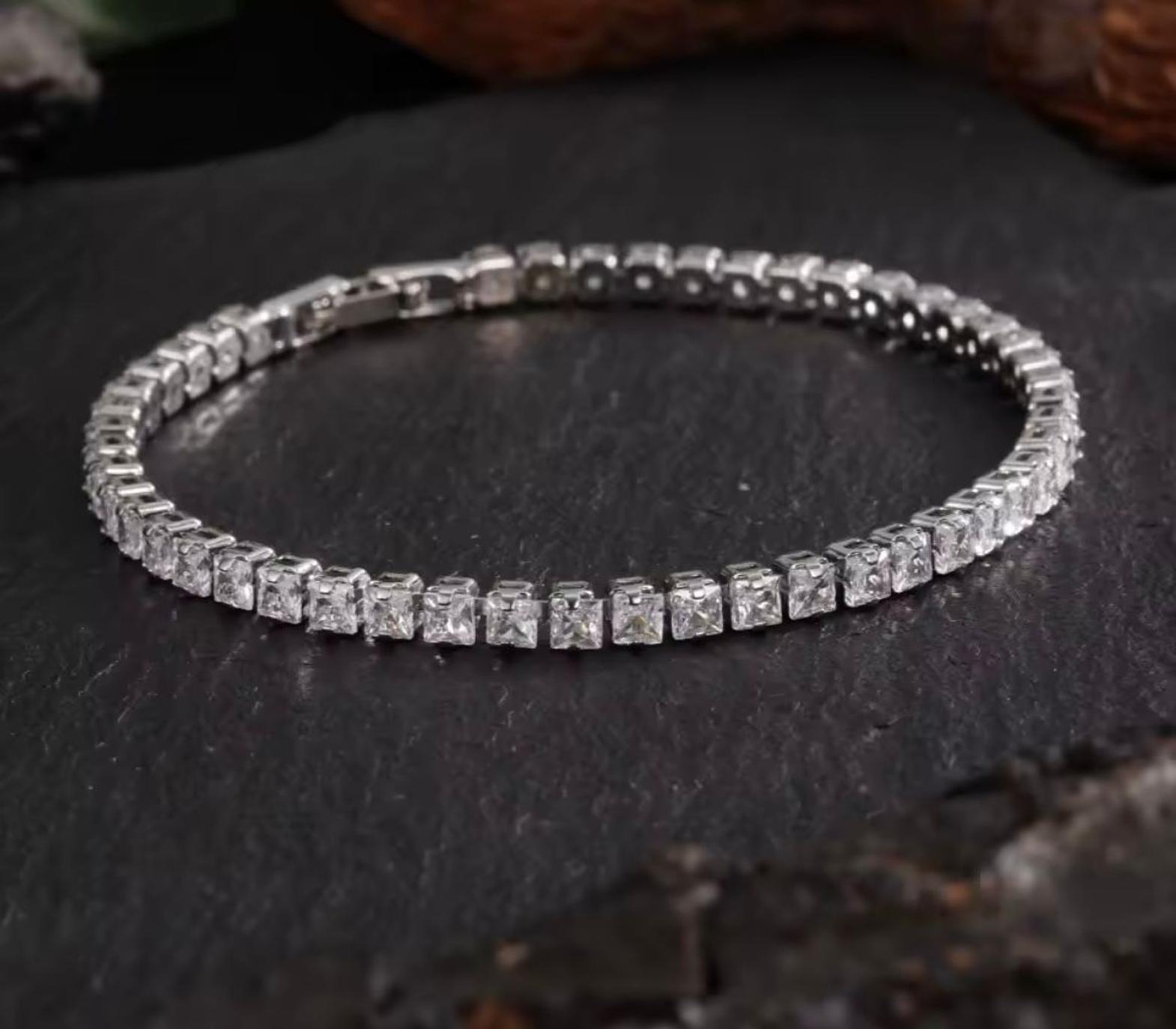 Featuring a continuous line of stunning emerald-cut cubic zirconia stones, this bracelet offers understated glamour and exceptional shine. Crafted in a gleaming silver finish, its construction is completely hypoallergenic for comfortable, worry-free wear.