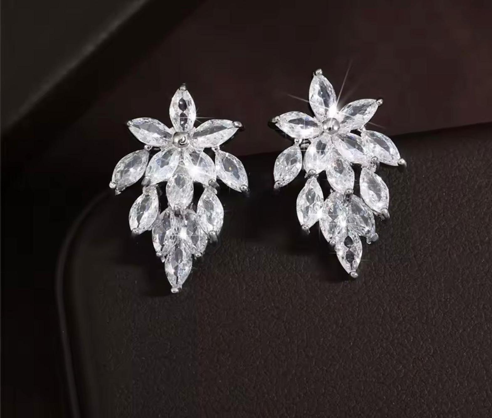 Channel the beauty of a garden in full bloom with these exquisite marquise-cut crystal earrings. Featuring a stunning tiered leaf silhouette and a brilliant silver-toned finish, these studs provide a sophisticated, light-catching statement for any formal or bridal look.