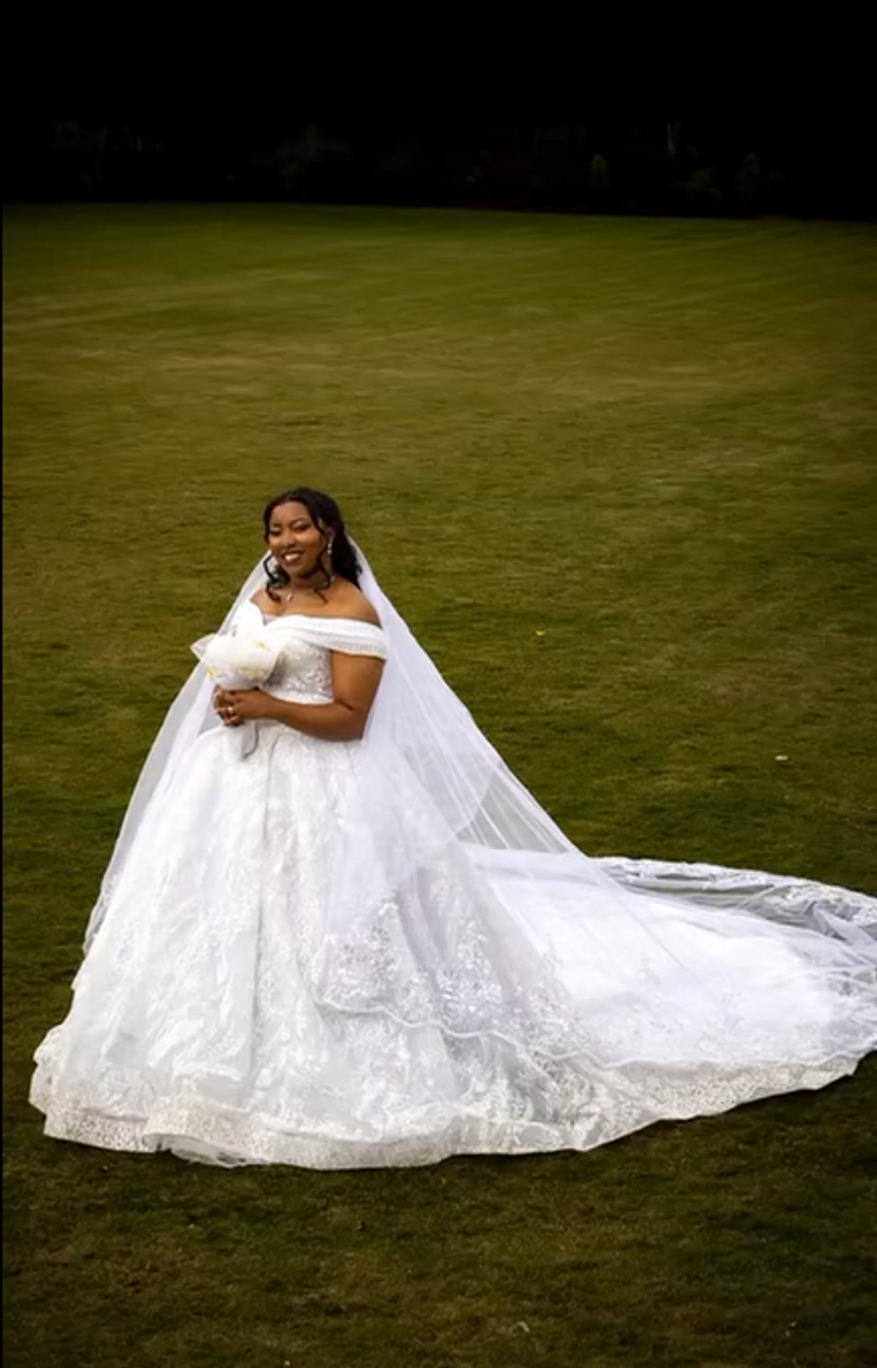Step into a true bridal fantasy with this magnificent gown, featuring a voluminous ball skirt and an extravagant, flowing cathedral-length train. The flattering off-shoulder neckline adds a touch of timeless, royal elegance to your perfect day.