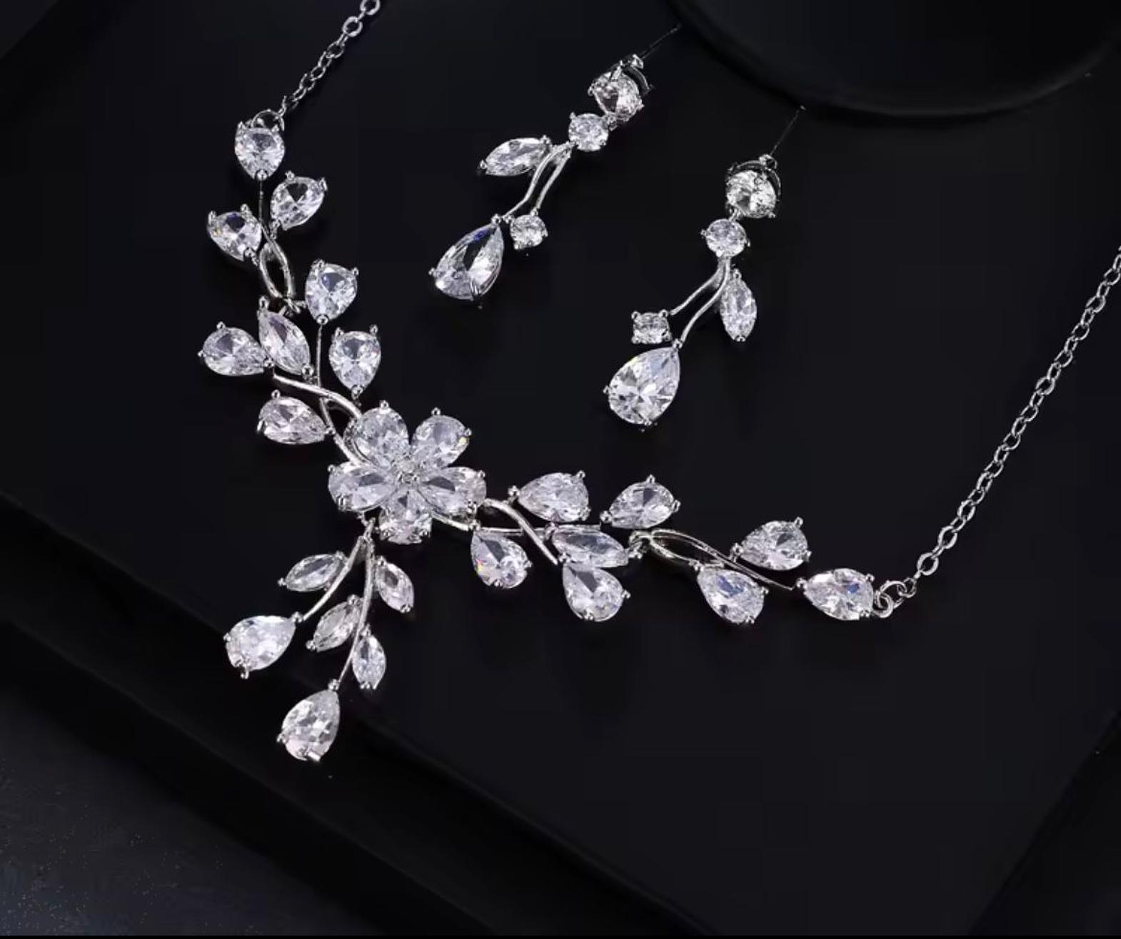 Adorn yourself with the whimsical beauty of a shimmering crystal vine, designed to capture the essence of a blooming spring garden. This hypoallergenic and non-tarnish set offers a radiant sparkle that effortlessly transitions from bridal elegance to evening glamour.