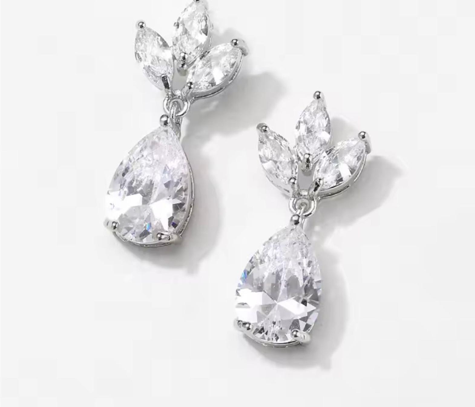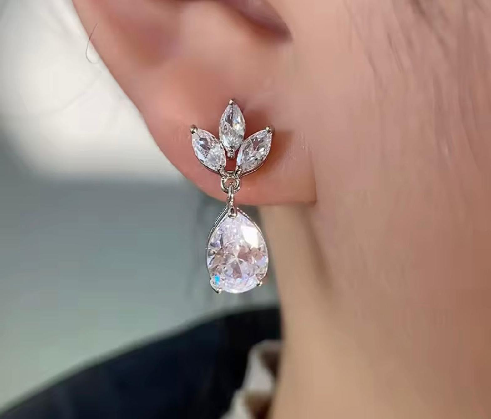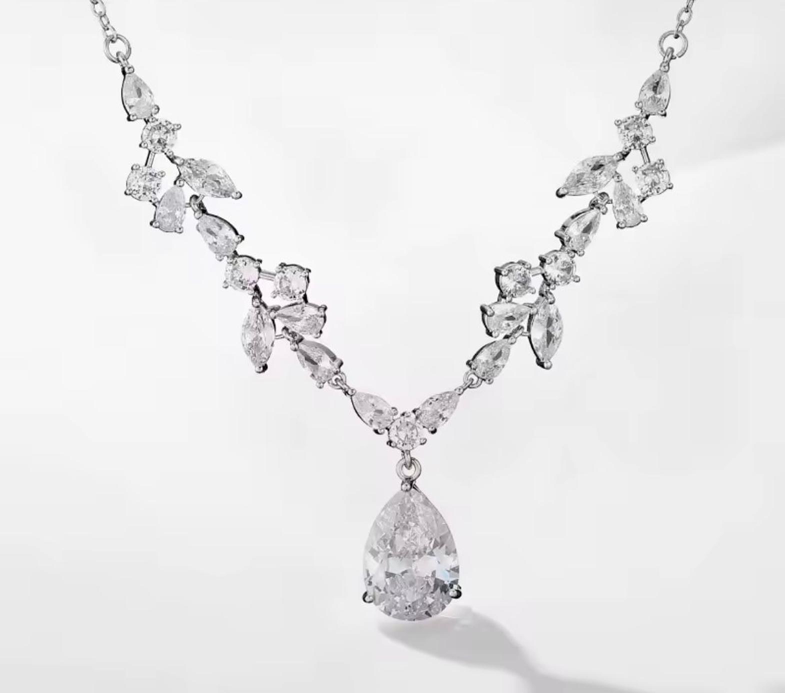 This magnificent jewelry set features a delicate, vine-like cascade of marquise-cut stones leading to a brilliant pear-drop pendant. The coordinating earrings perfectly mirror the graceful, nature-inspired sparkle of the necklace.