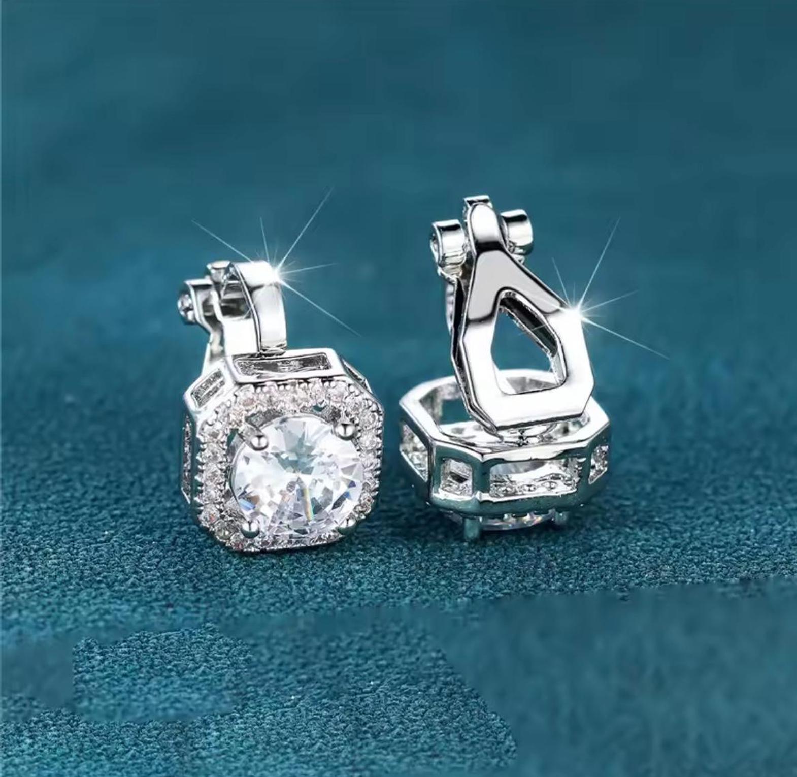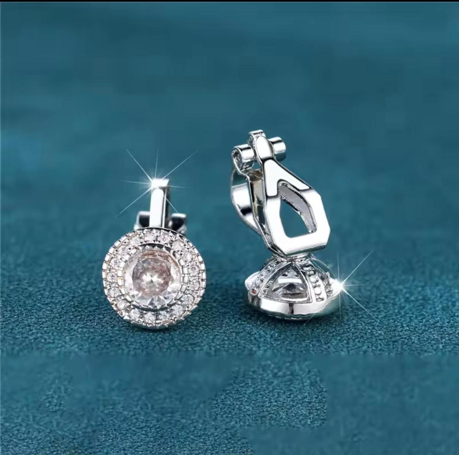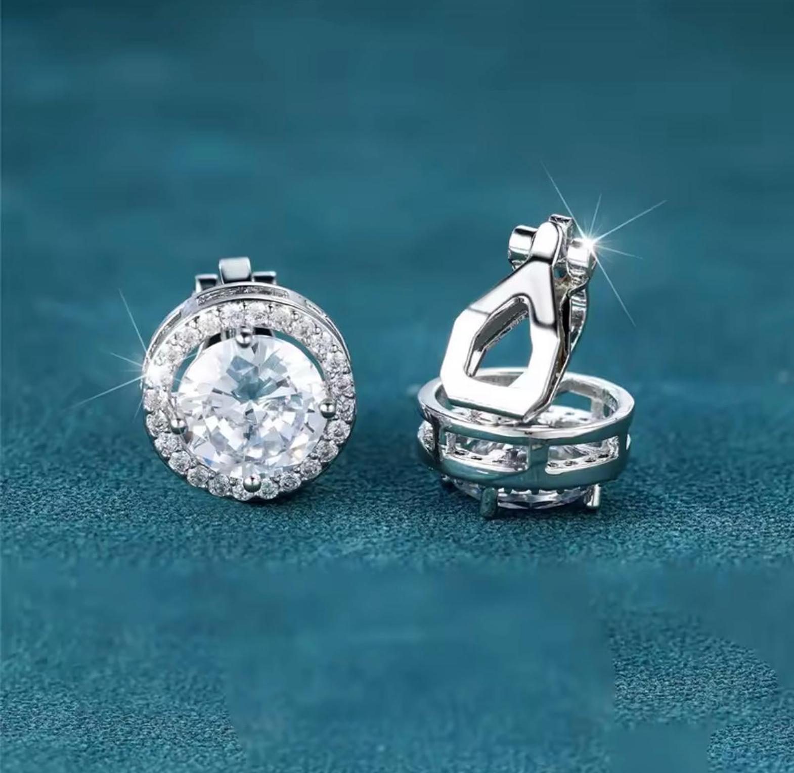 These versatile clip-on earrings feature a brilliant, round-cut solitaire stone set in a classic four-prong setting. Designed for comfortable wear without piercing, they deliver maximum sparkle and timeless elegance.