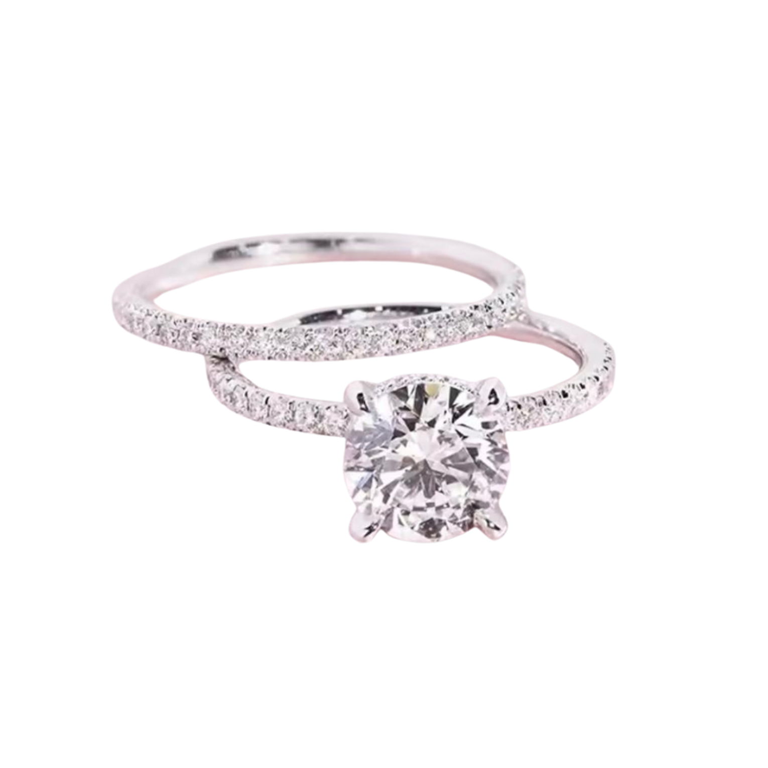 This exquisite two-piece ring set is crafted from genuine S925 Real Sterling Silver, offering superior shine and quality. The main ring features a spectacular round-cut solitaire, with both the engagement ring and the matching band entirely crowned with brilliant cubic zirconia stones.
