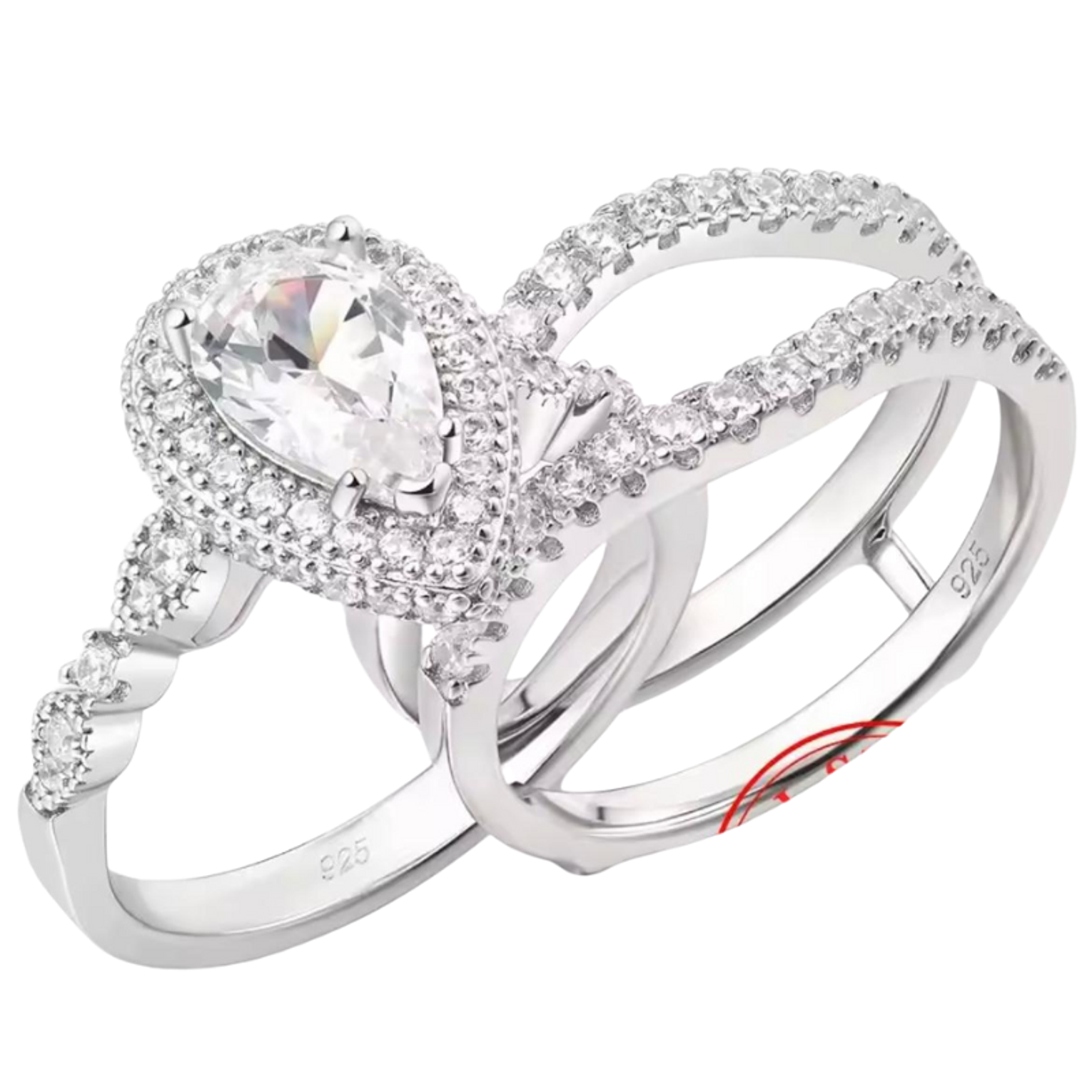 This magnificent two-piece bridal set is crafted from genuine S925 pure sterling silver, offering a timeless, brilliant white metal finish. The engagement ring features a dazzling pear-cut cubic zirconia halo, complemented by a perfectly contoured, pave-set band.