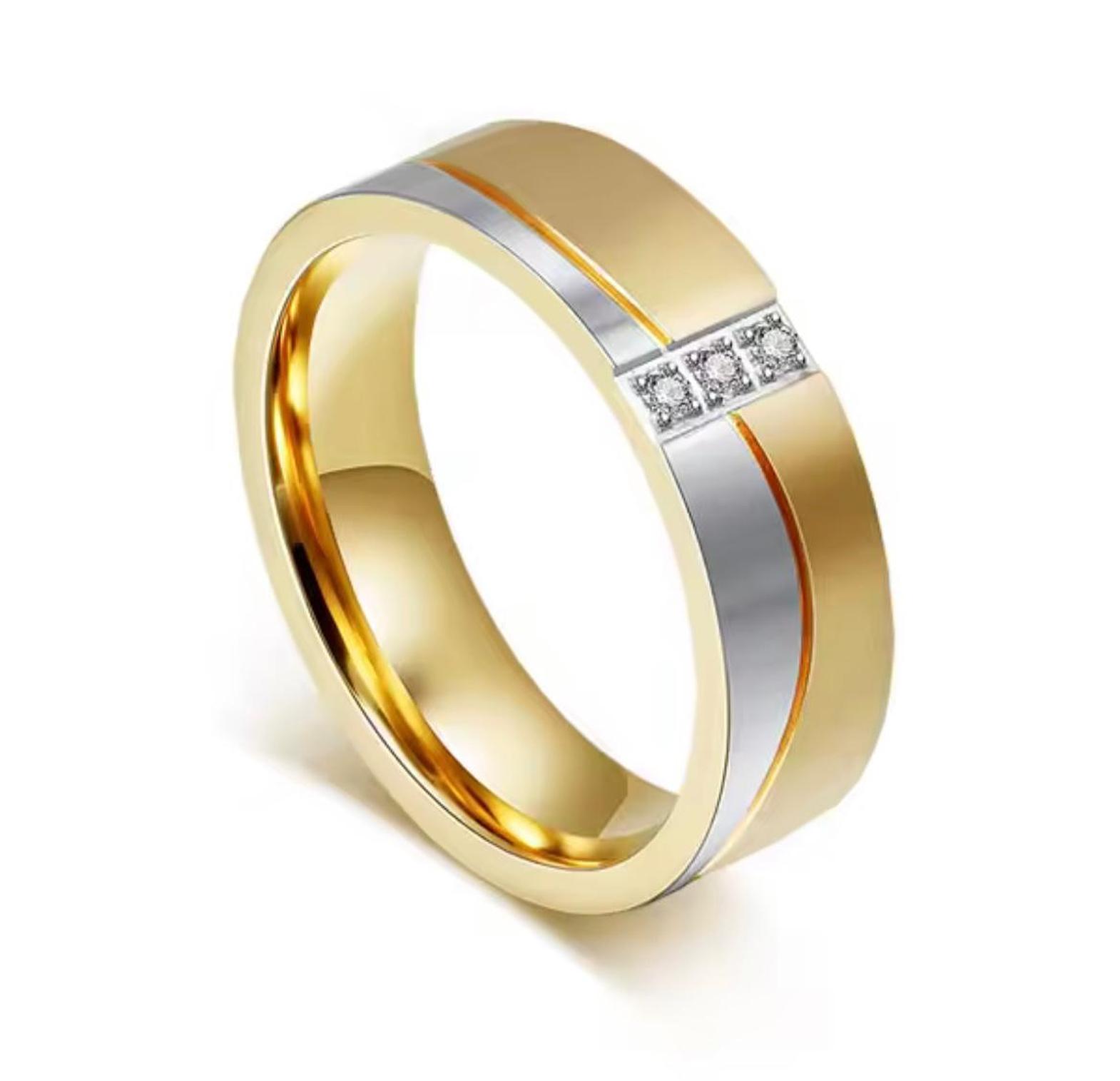 This sophisticated 6mm band masterfully combines a high-polish silver tone with vibrant IP gold plating in a striking two-tone design, sold individually. The female style is enhanced by a square setting of brilliant AAA cubic zirconia stones for an elevated sparkle. Men sizes 7-12, Ladies sizes 5-9