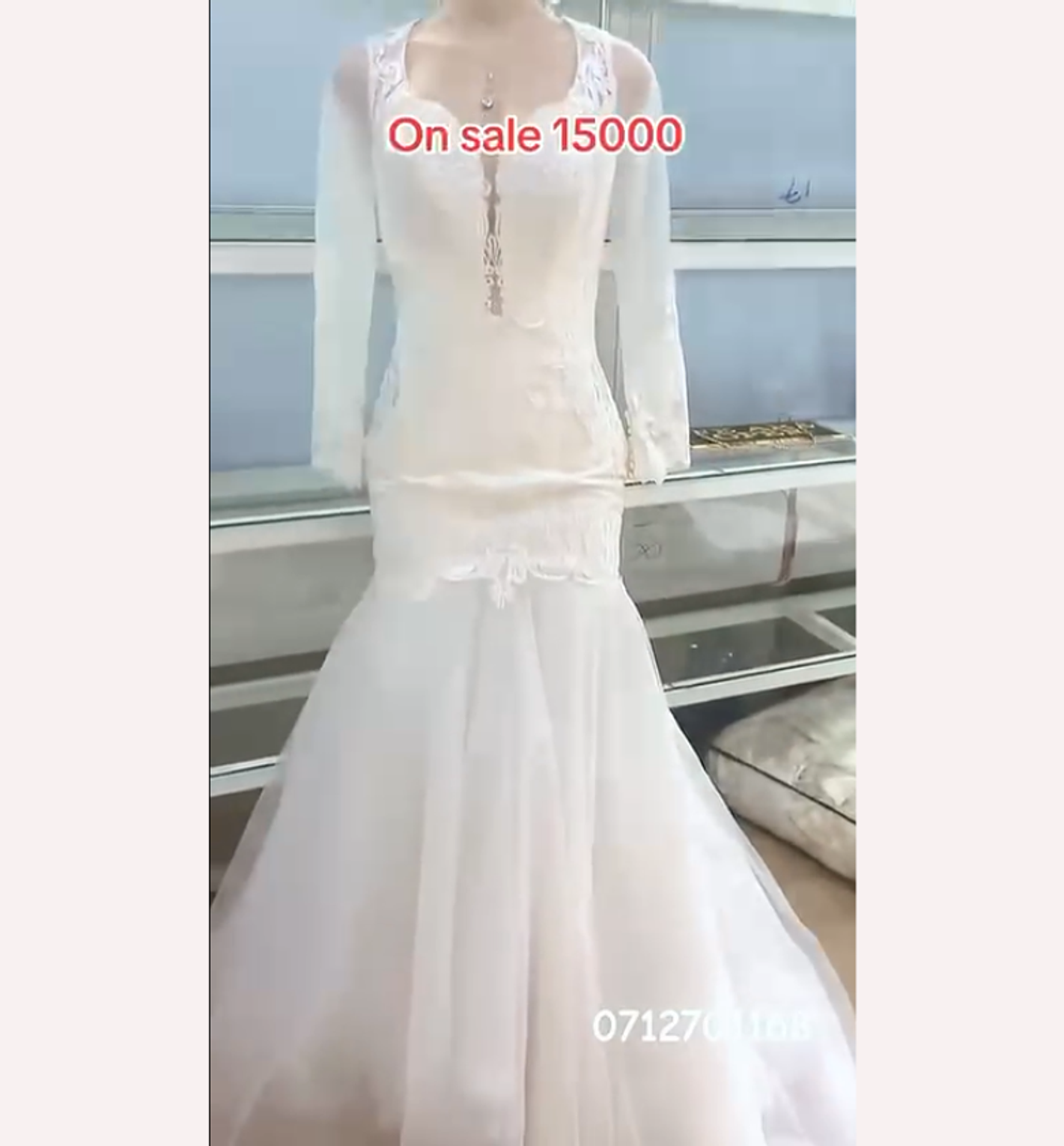 This elegant mermaid gown offers a flattering fit, featuring a sleek bodice and delicate long illusion sleeves for beautiful coverage. Subtle lace appliqués detail the waist and bust, creating a sophisticated and romantic silhouette with a touch of modern allure.