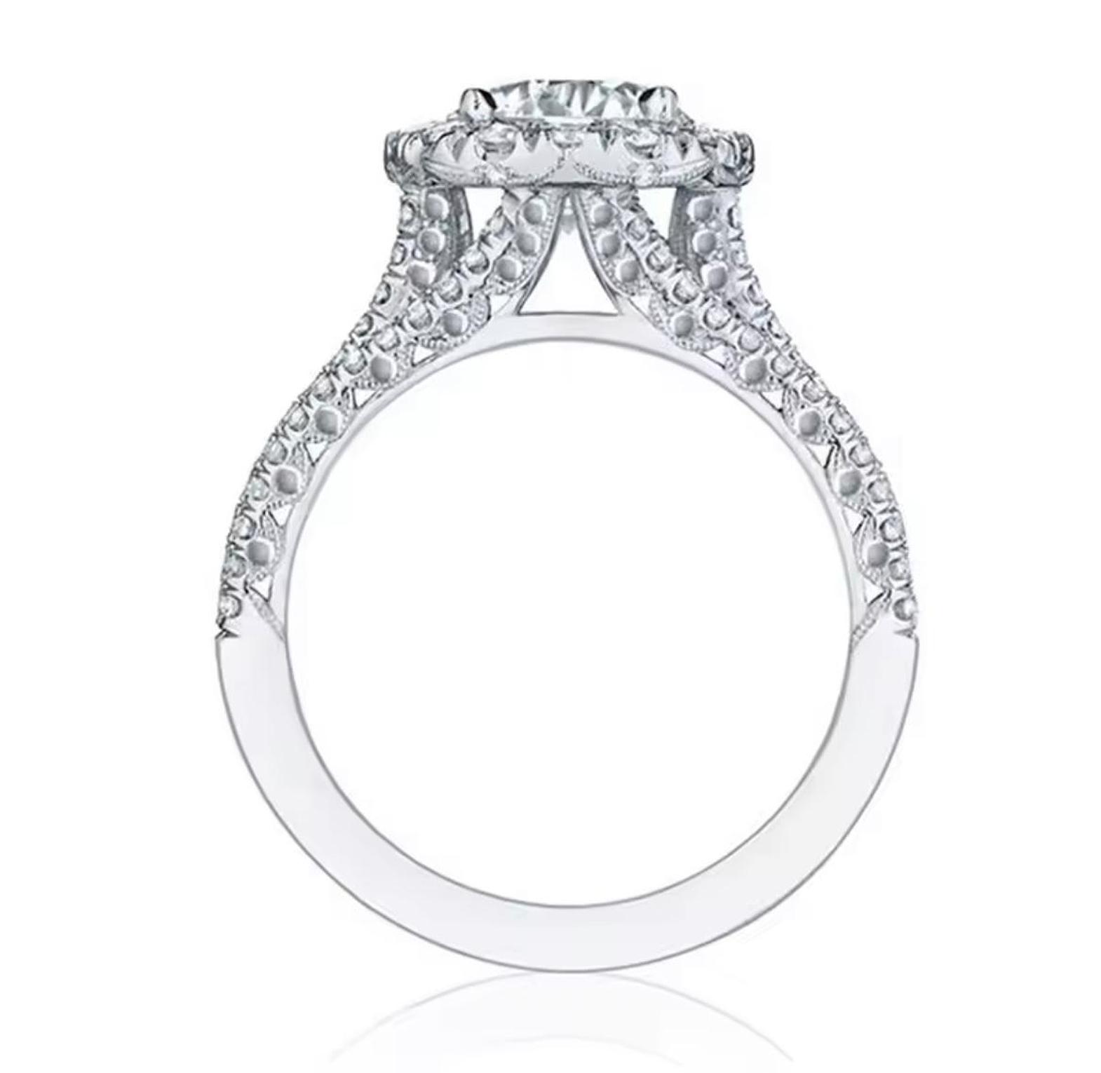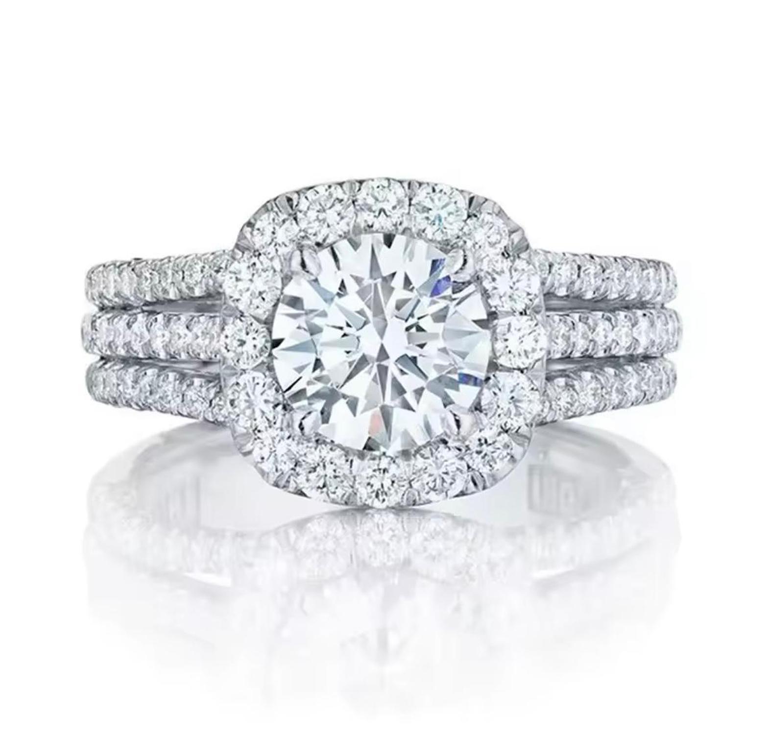 This breathtaking single ring is crafted from genuine pure silver and features a magnificent central stone surrounded by a double cushion-shaped halo. The design is completely endowed with cubic zirconia stones, offering a glimmering and intensely shining profile. Sizes 6-10