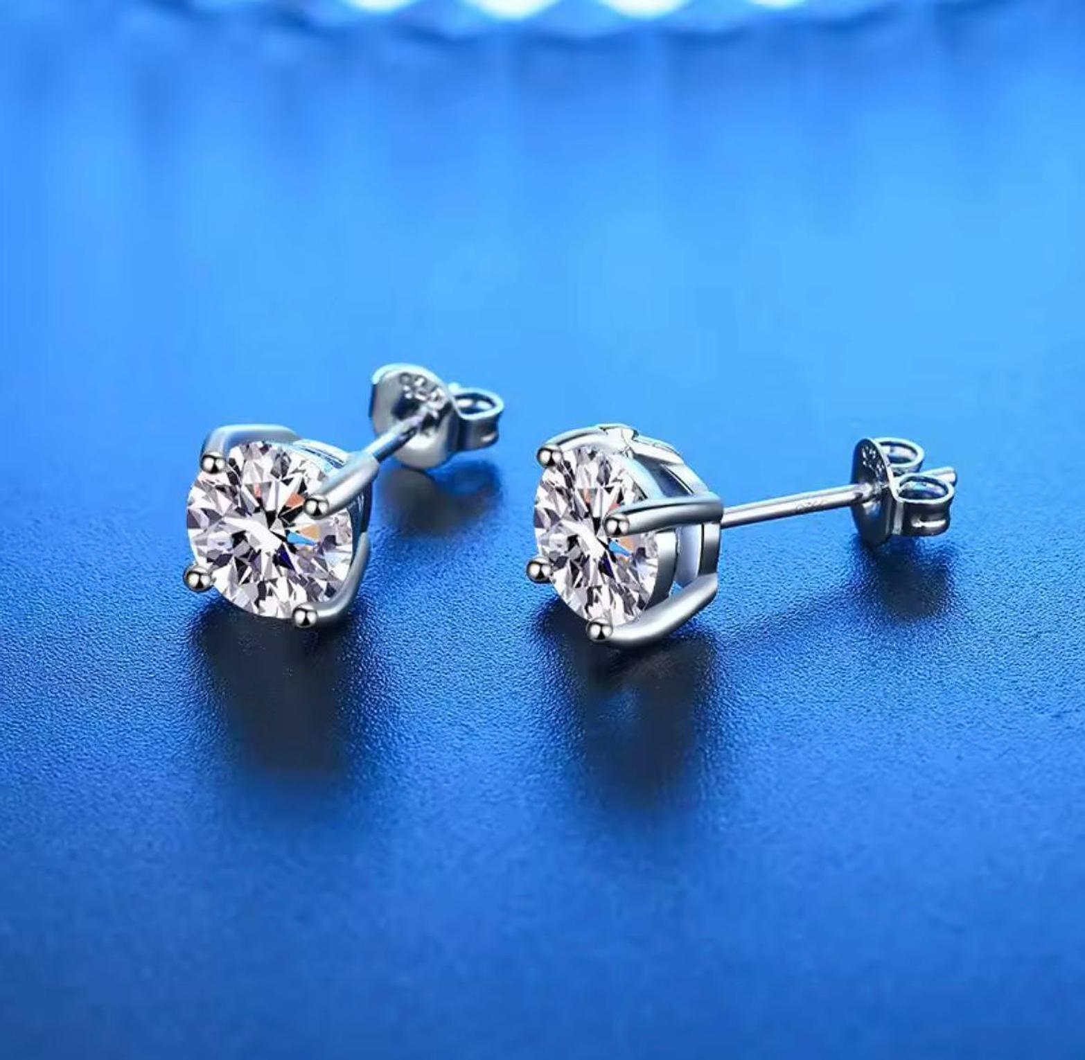 These essential silver studs feature a magnificent, single round-cut center stone held aloft by a minimal four-prong setting for maximum light exposure. Their brilliant simplicity makes them the ultimate classic accessory for effortless elegance and dazzling sparkle.