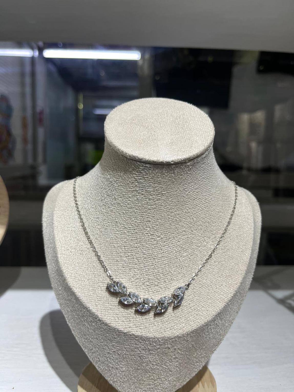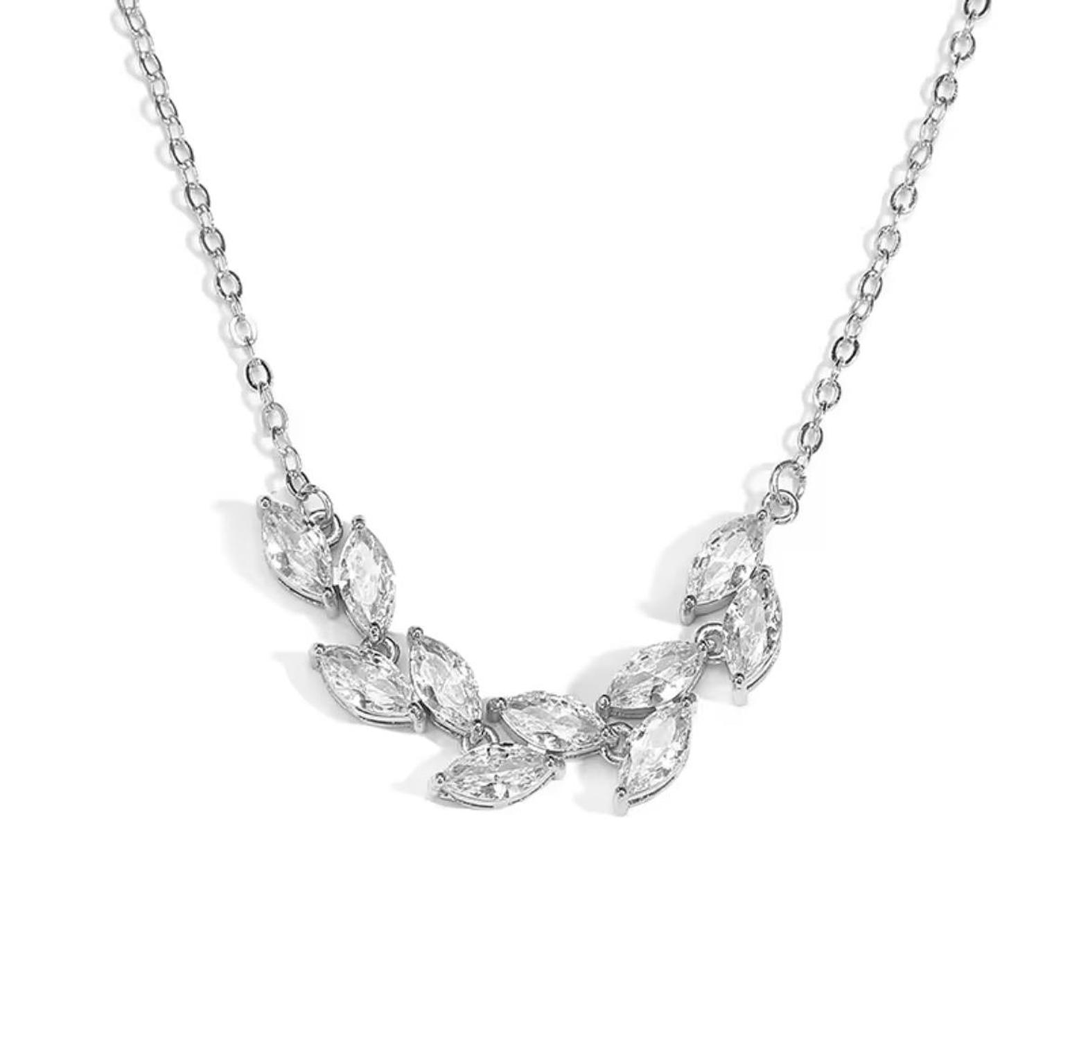 This elegant piece features a graceful, curved cluster of brilliant marquise-cut zirconia stones arranged in a delicate leaf-like pattern. It is offered in stunning variants of both classic silver and polished rose gold finishes for versatile styling.